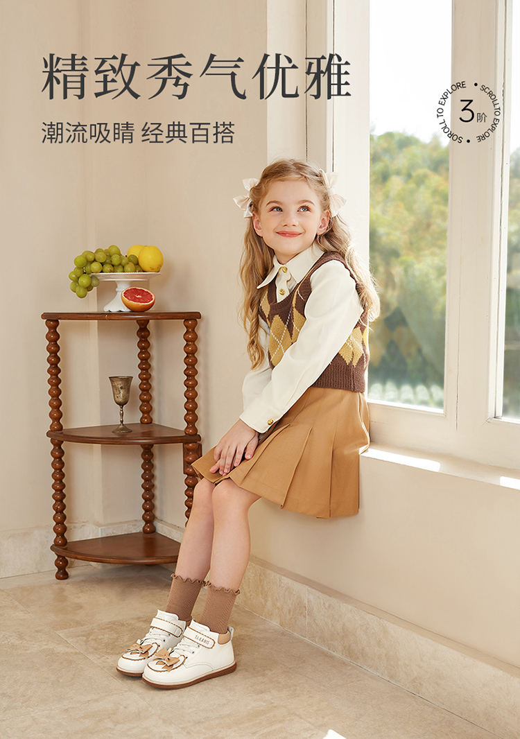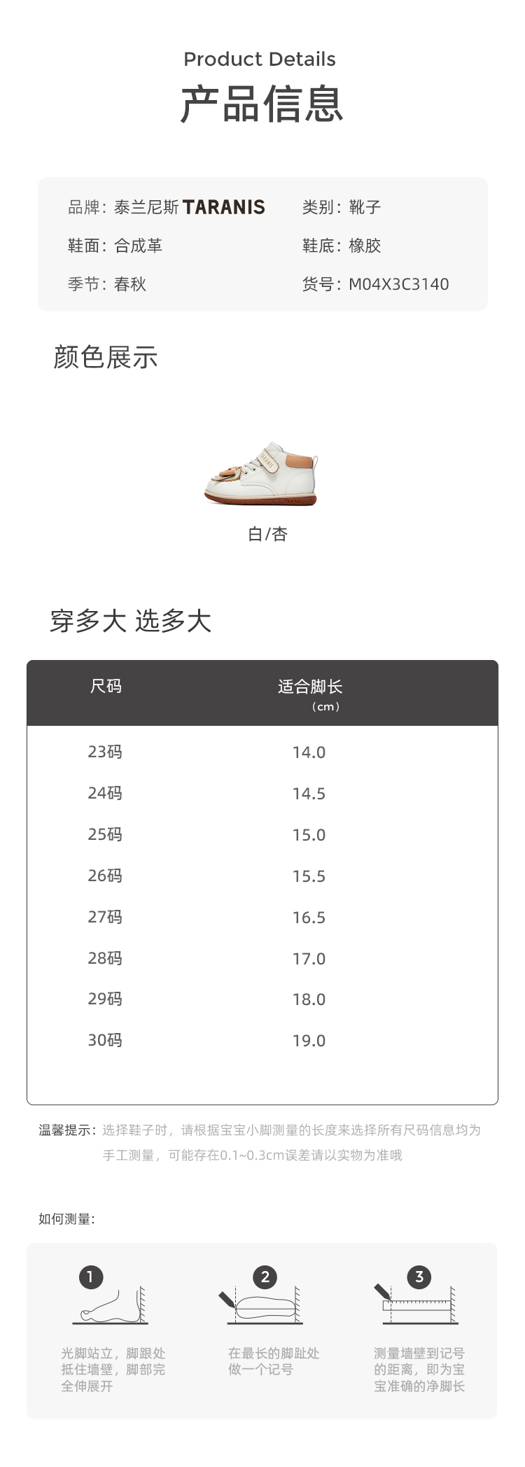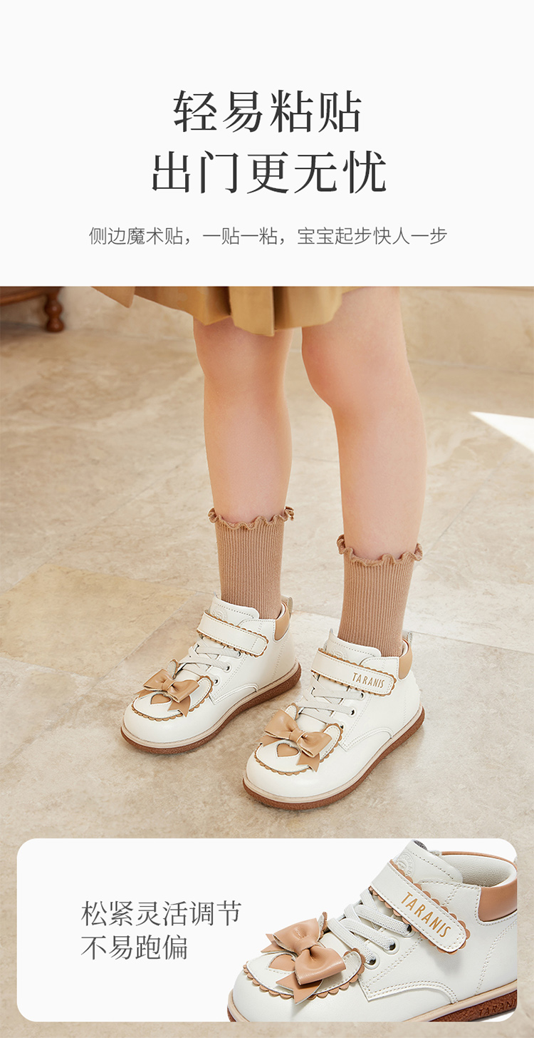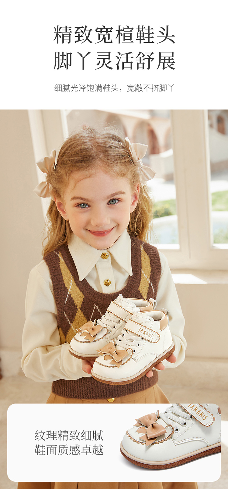 泰兰尼斯秋季小童段精致优雅蝴蝶结小皮鞋M04X3C3140