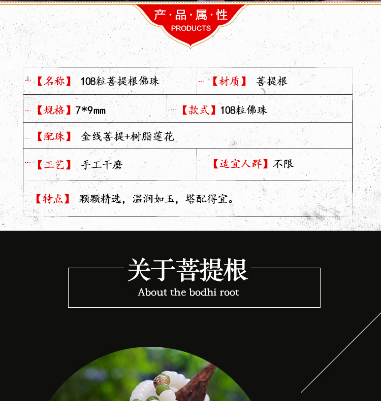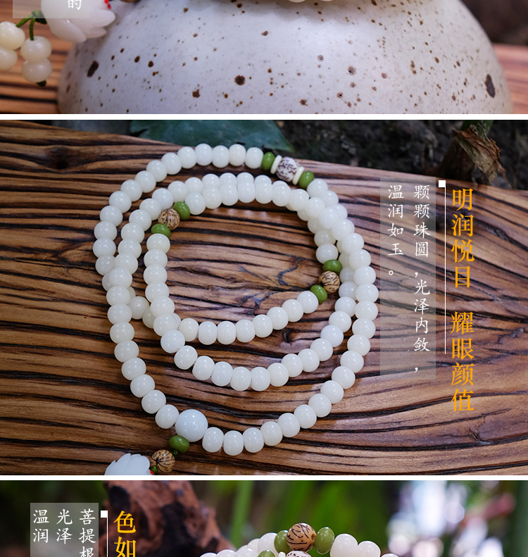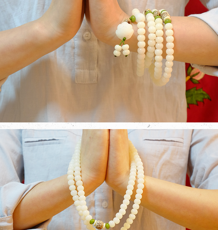 白菩提根108粒白菩提根佛珠 手链手串7*9mm莲花款背云