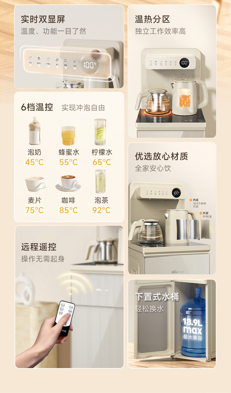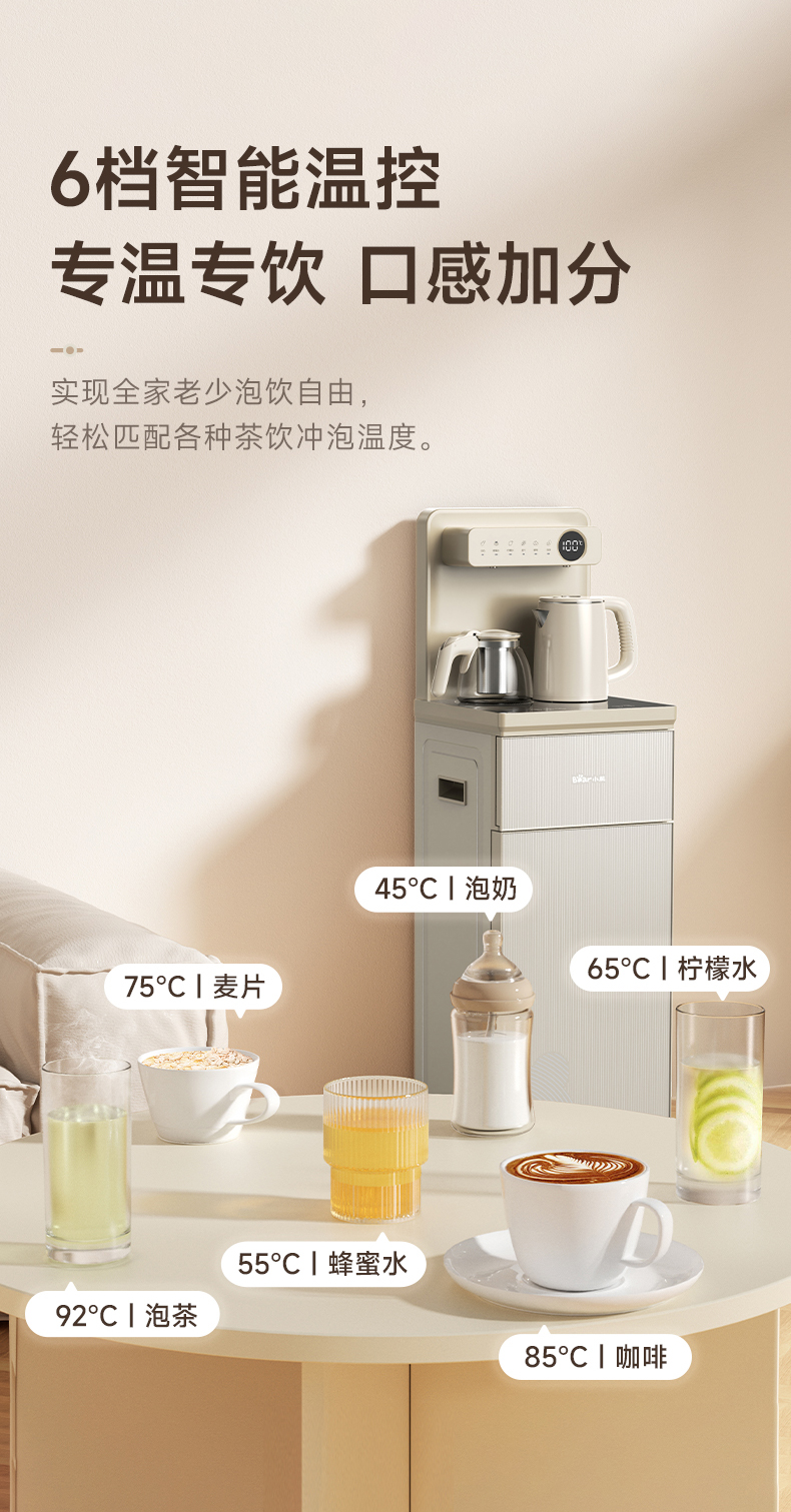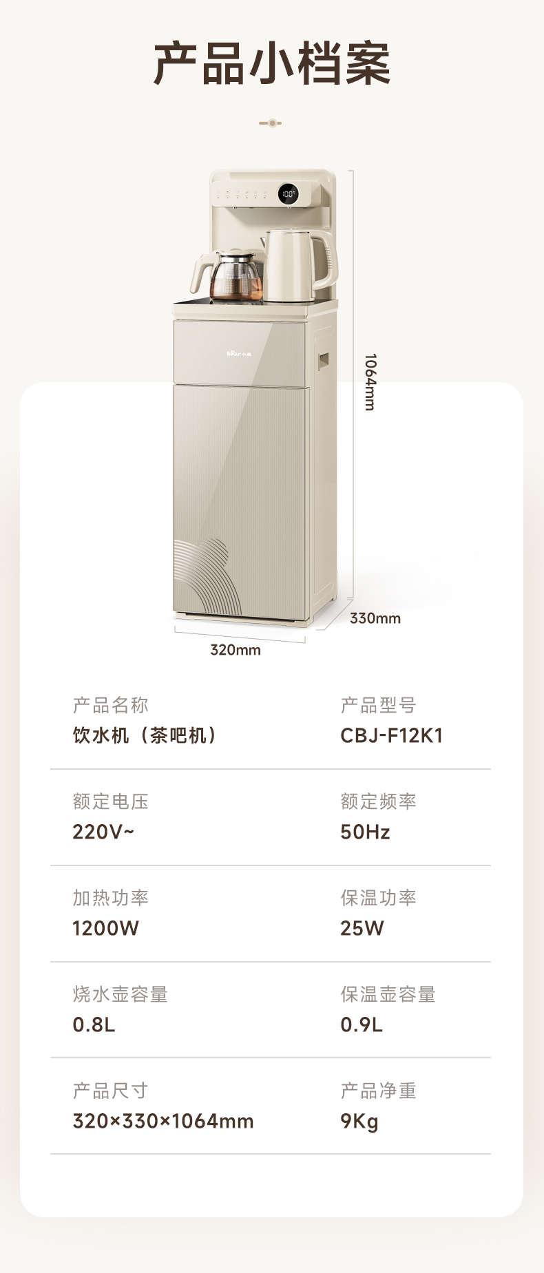【小程序】小熊(Bear)茶吧机 饮水机家用高端客厅遥控智能全自动双出水烧水一体机直饮机饮水机下置式温热款CBJ-F12K1