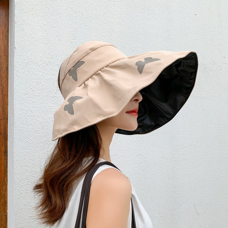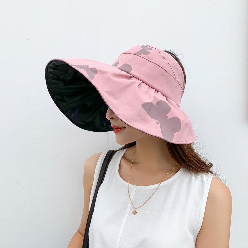 蝴蝶印花黑胶空顶帽,夏季防晒遮阳帽大尚防紫外线太阳帽 QM-YT00279