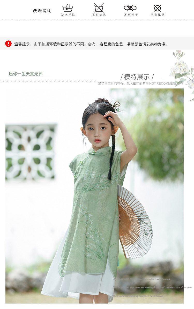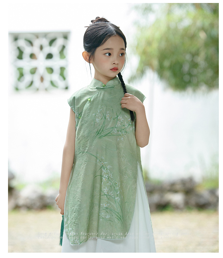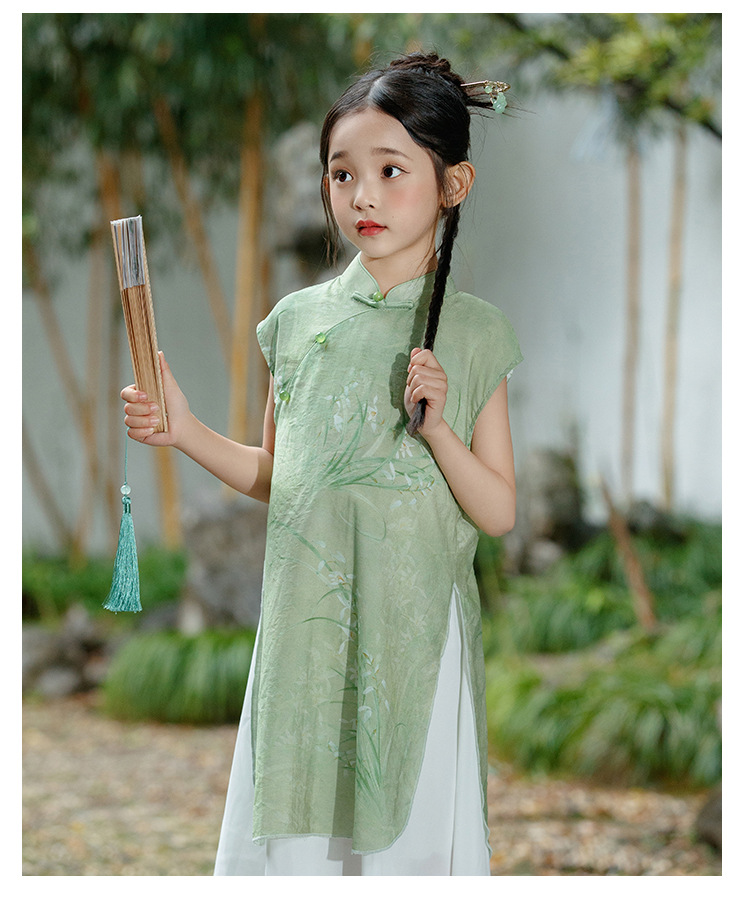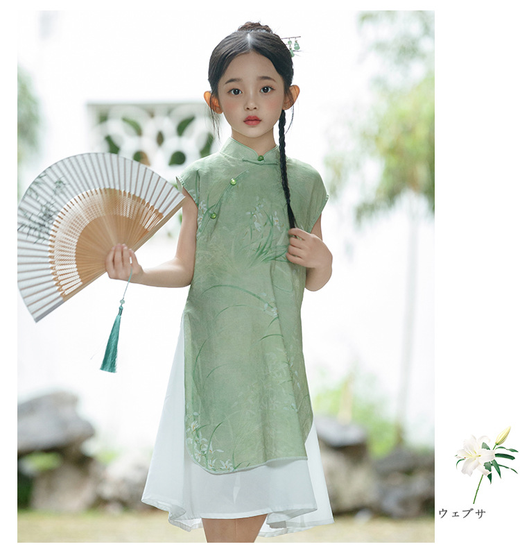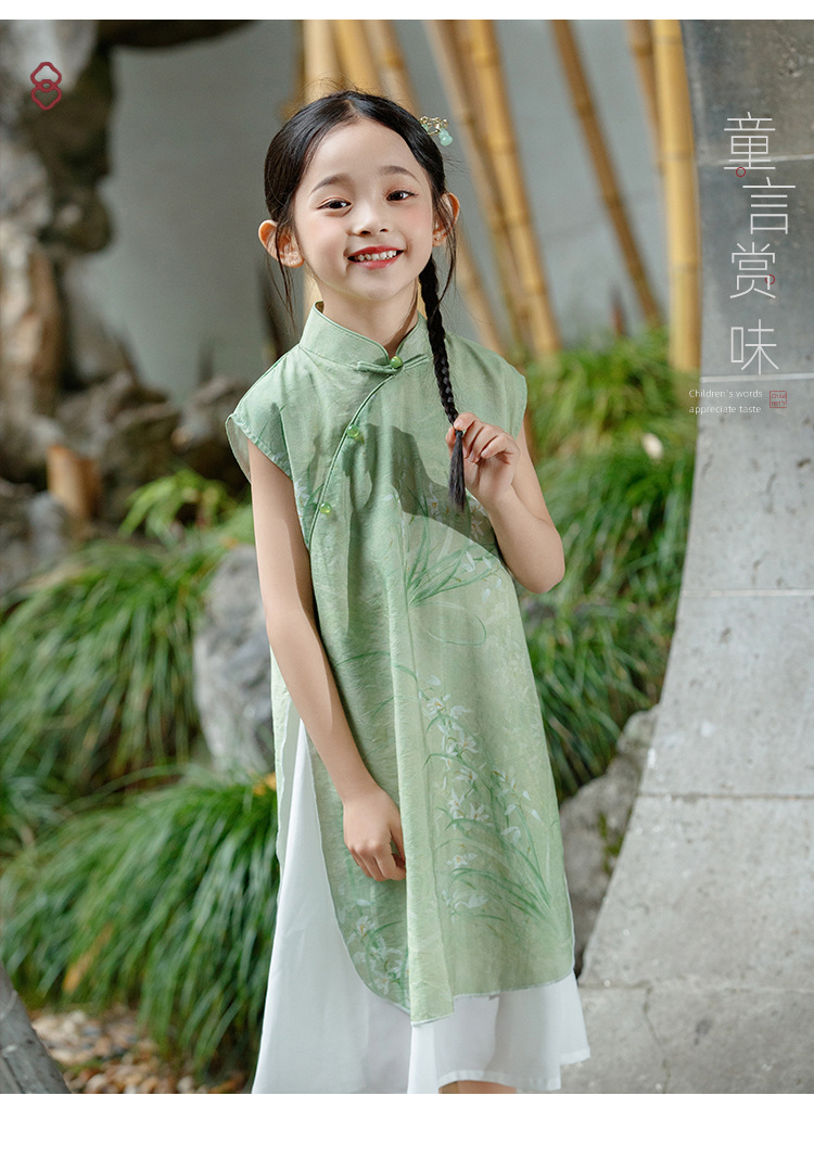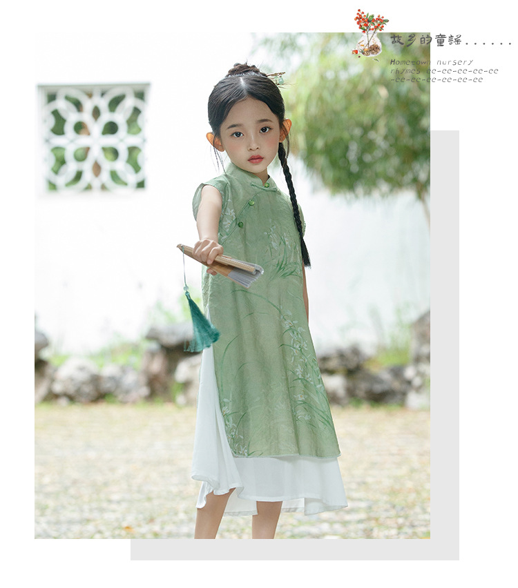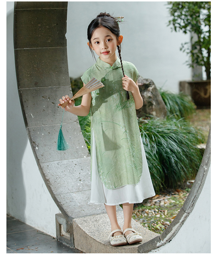绿色古风女童,奥戴改良旗袍汉服LSB- 3003