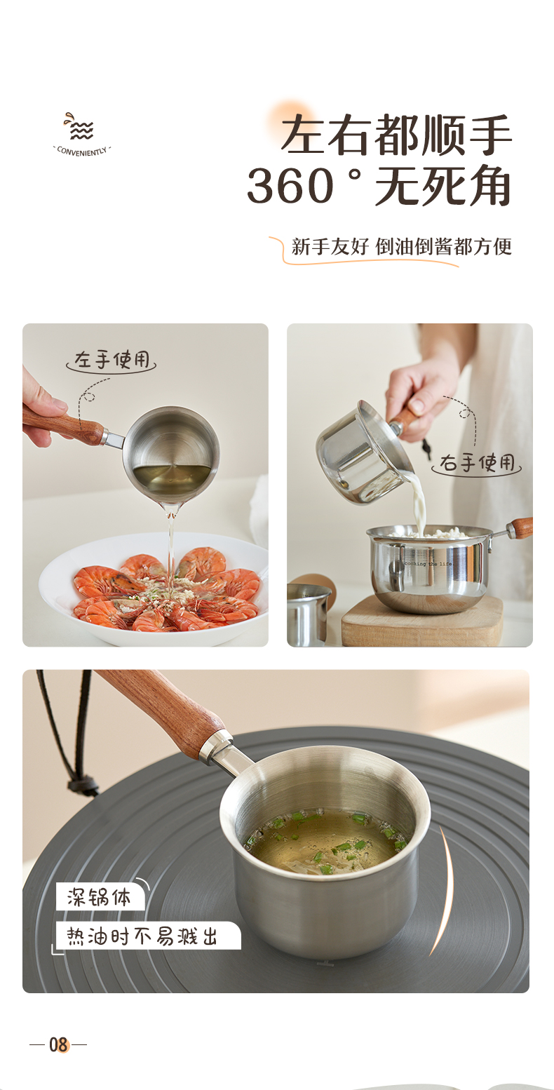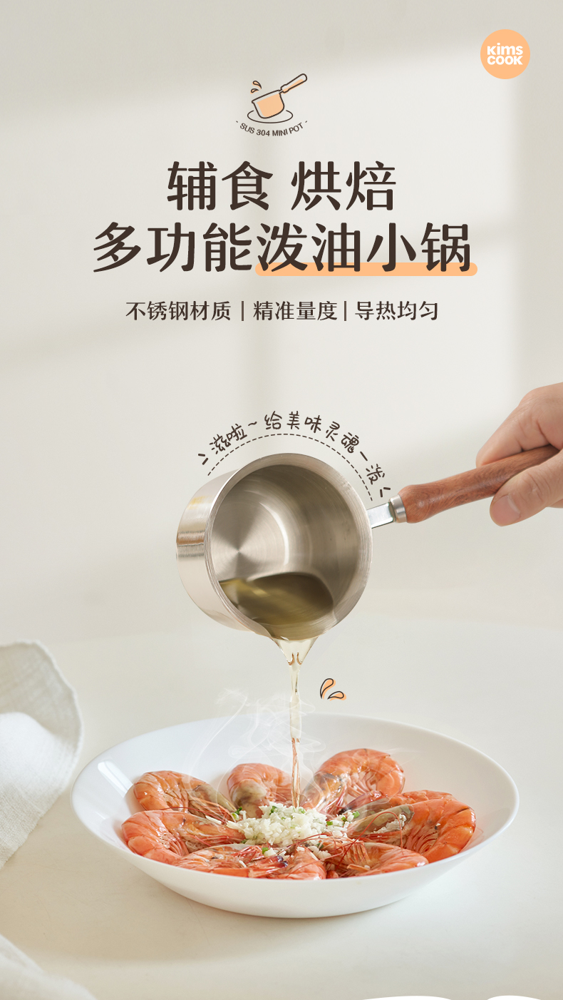 kimscook不锈钢油泼锅家用长柄浇油热油淋油专用多功能小锅304