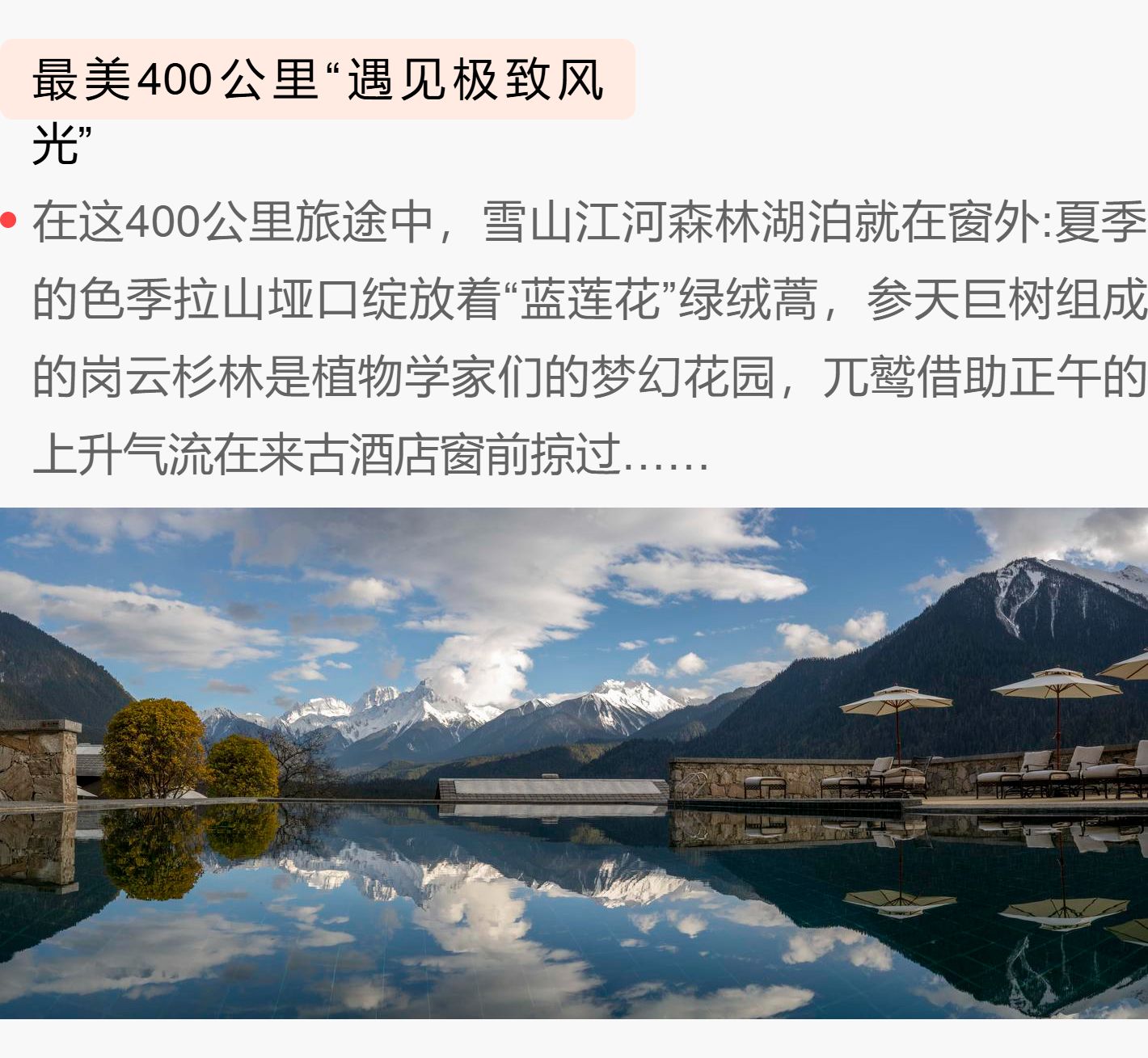 6天5晚圣诞/元旦团期【松赞 | 冰川环线 最美四百公里 6天5晚自由行】西藏松赞波密来古南迦巴瓦深度体验,全程松赞系列酒店,含接送机及全程用车、酒店早餐、下午茶~
