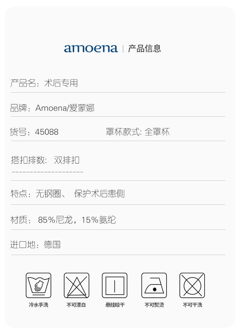 【优惠详情咨询客服】Amoena爱蒙娜德国进口义乳文胸乳腺术后专用胸罩无钢圈内衣 45088