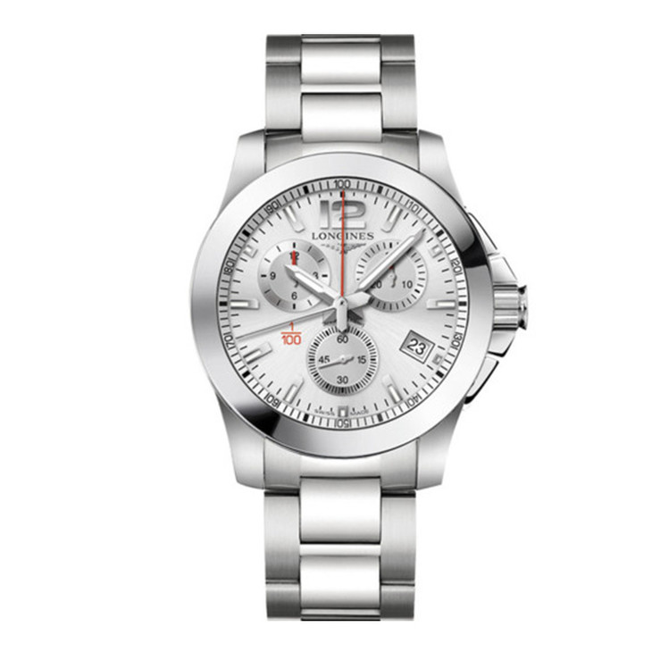 镜面 材质 | 蓝宝石水晶玻璃 | 表盘 | 精钢表壳 银色太阳饰纹表盘,镶嵌阿位伯数字和时标,Super-LumiNova夜光,镀银抛光指针 日期显示 计时码表 阿拉伯数字 条字时标 |