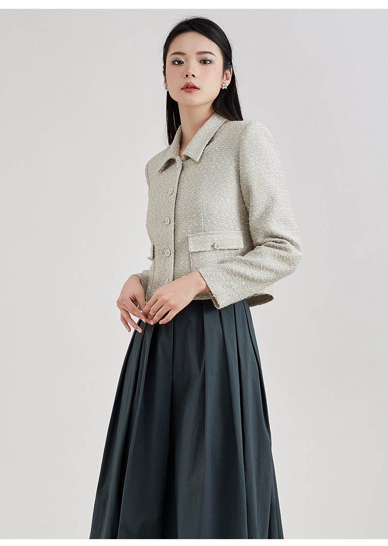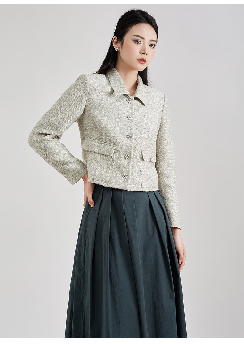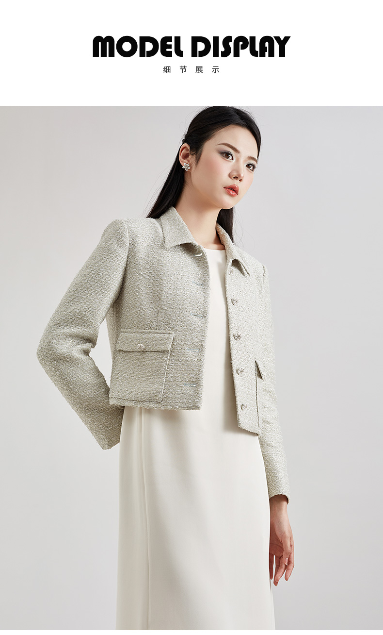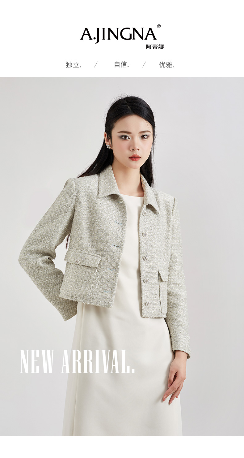 【商场同款】阿菁娜春小香风时尚感单排珍珠扣小外套A28C107005