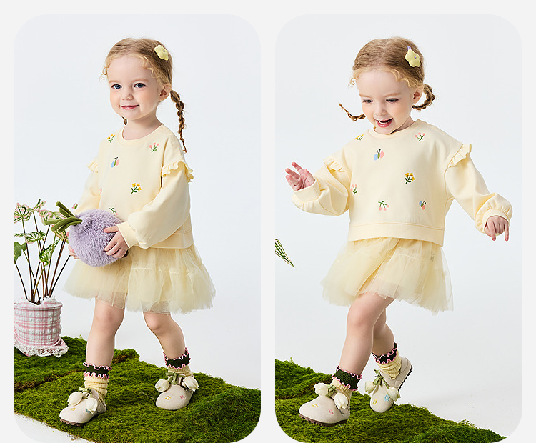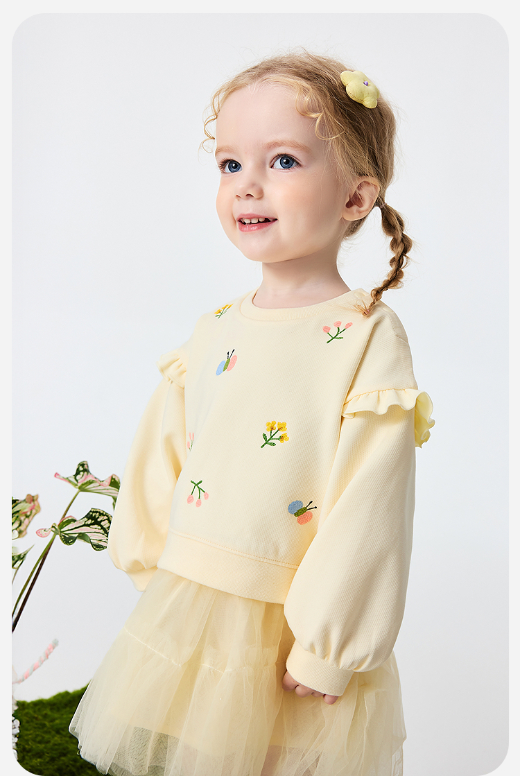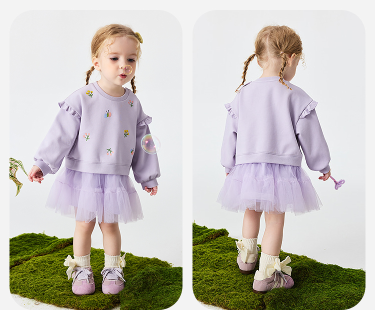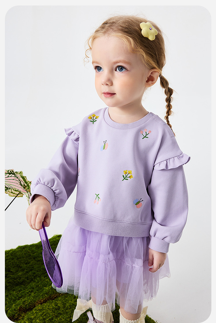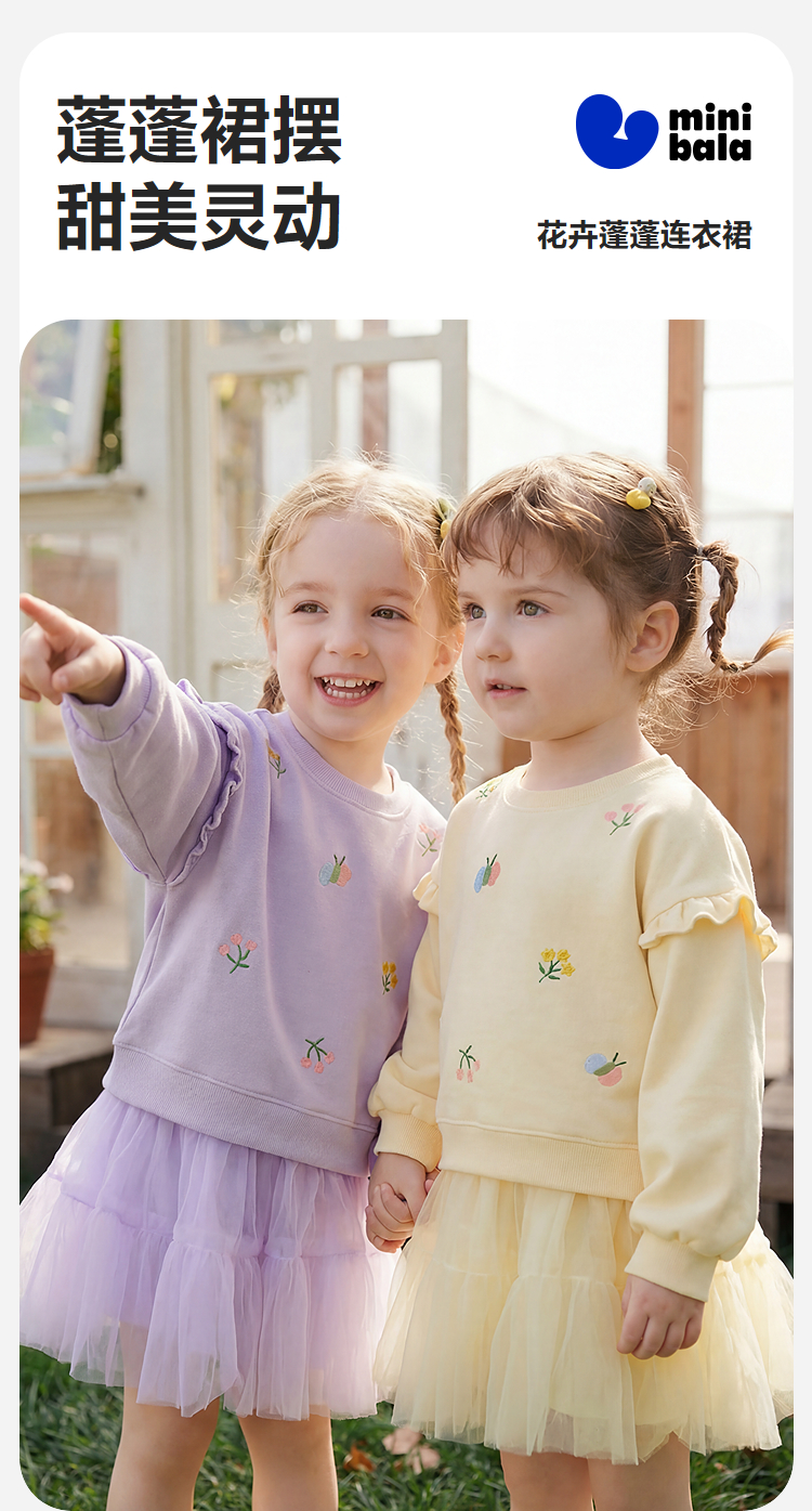 迷你巴拉巴拉女童宝宝裙子儿童卫衣拼网纱甜美连衣裙2026春新品