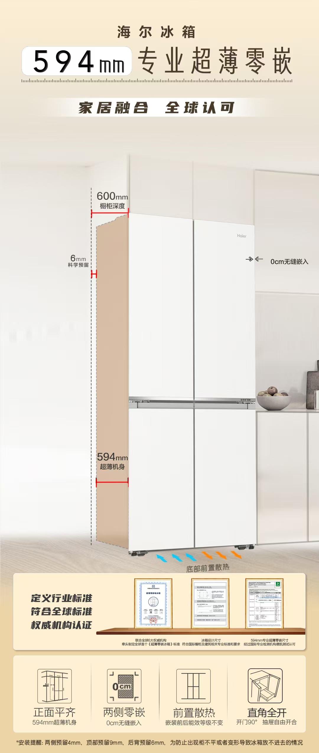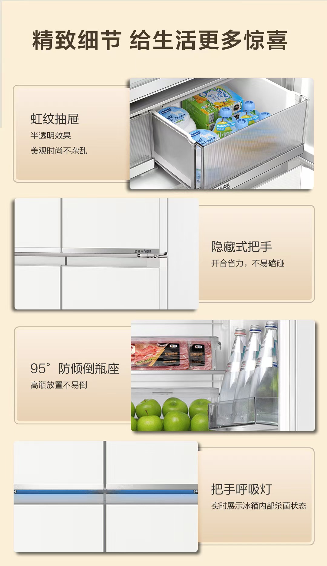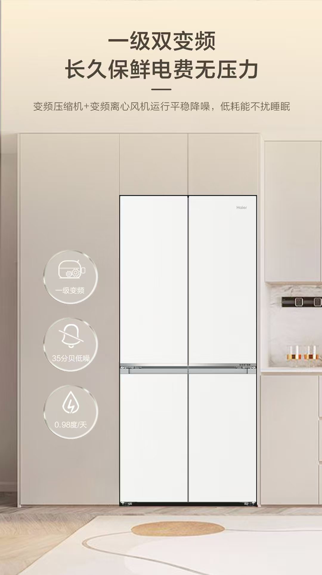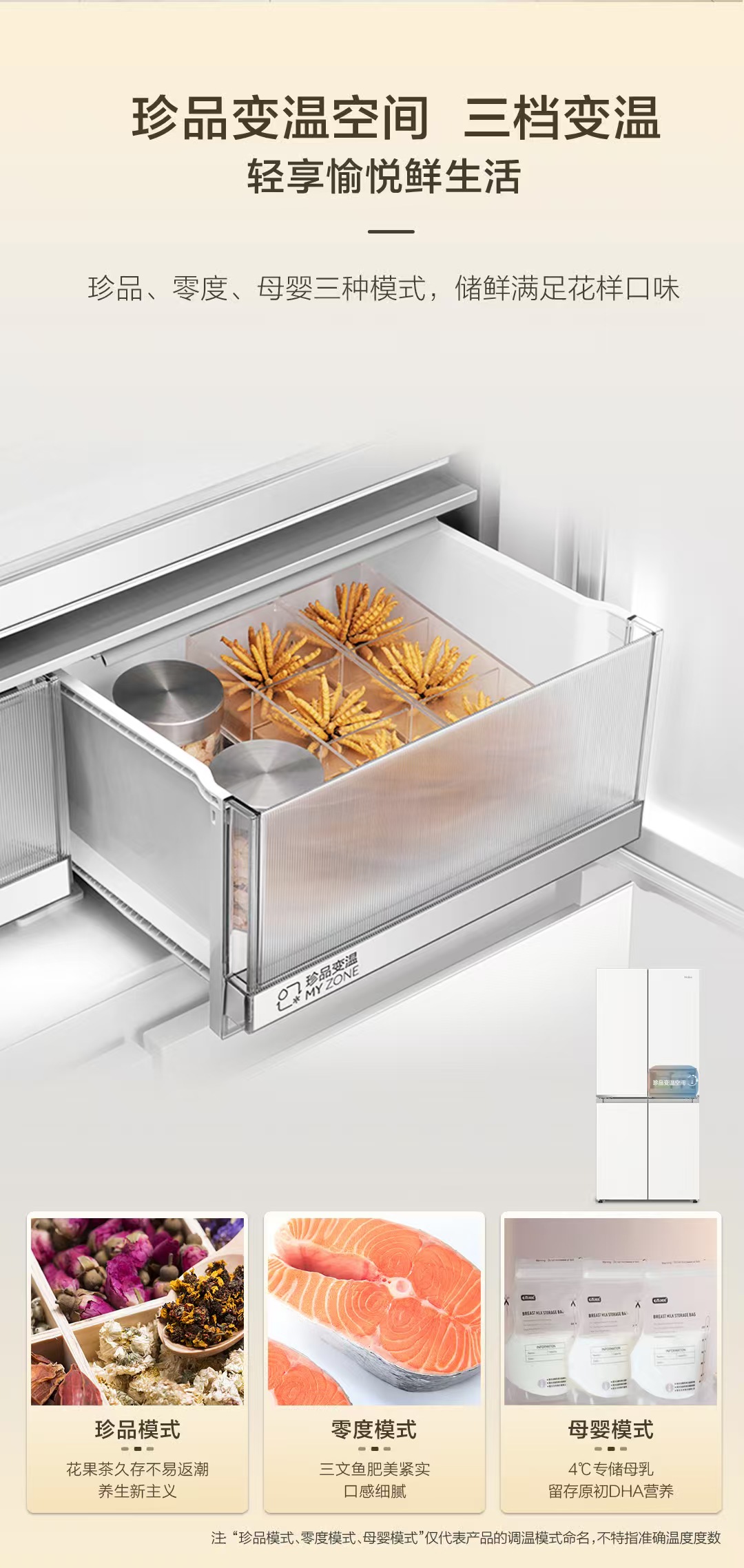 山茶花-海尔冰箱BCD-505WGHTD1BY7U1 全空间保鲜科技 594mm专业超薄零嵌 阻氧干湿储 EPP超净系统