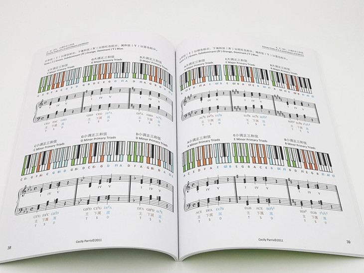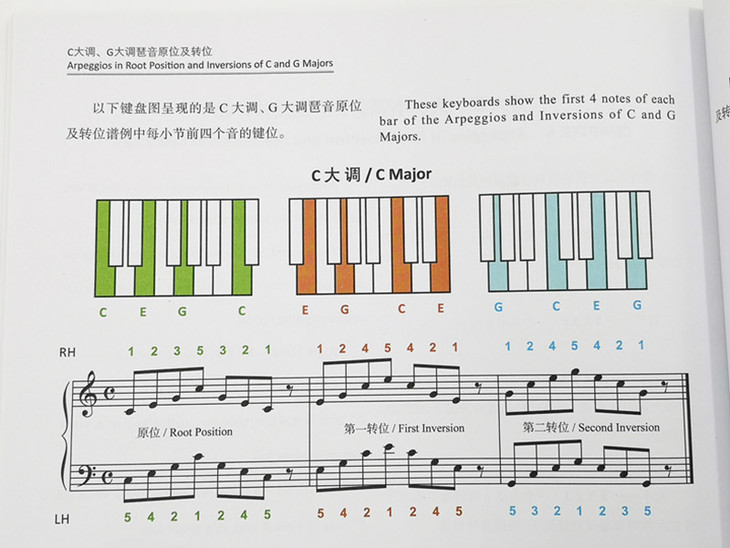 彩色键盘图解音阶和弦琶音 钢琴初学入门教程教材 大调音符学习 七和弦琶音钢琴奏法技巧 音乐图书