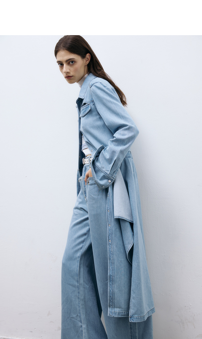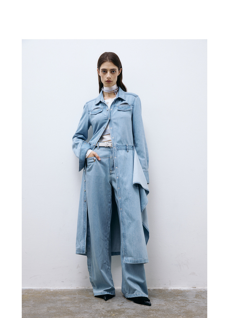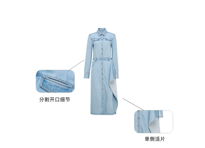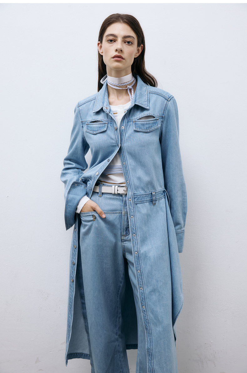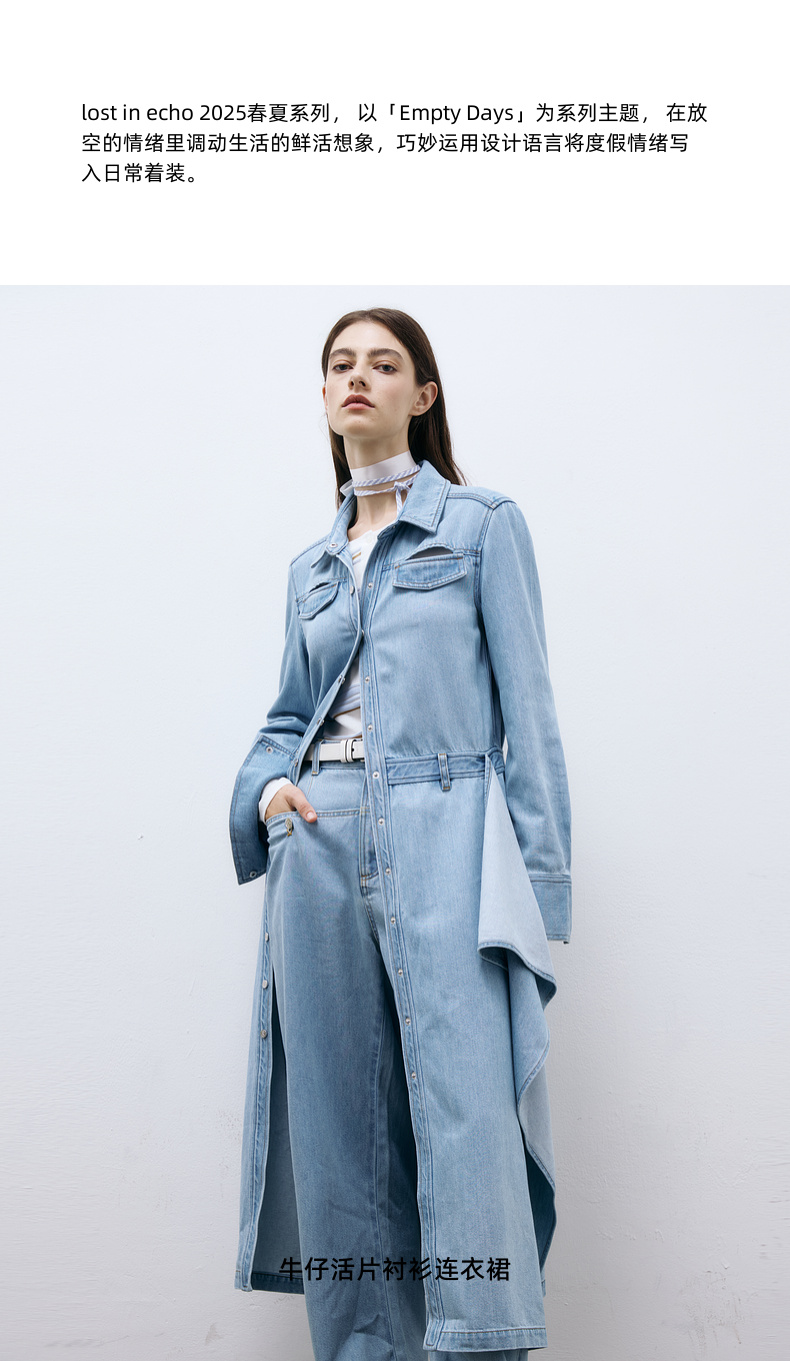 [福利价]lost in echo2025春夏新款时尚浅色牛仔长款衬衫外套修身连衣裙女