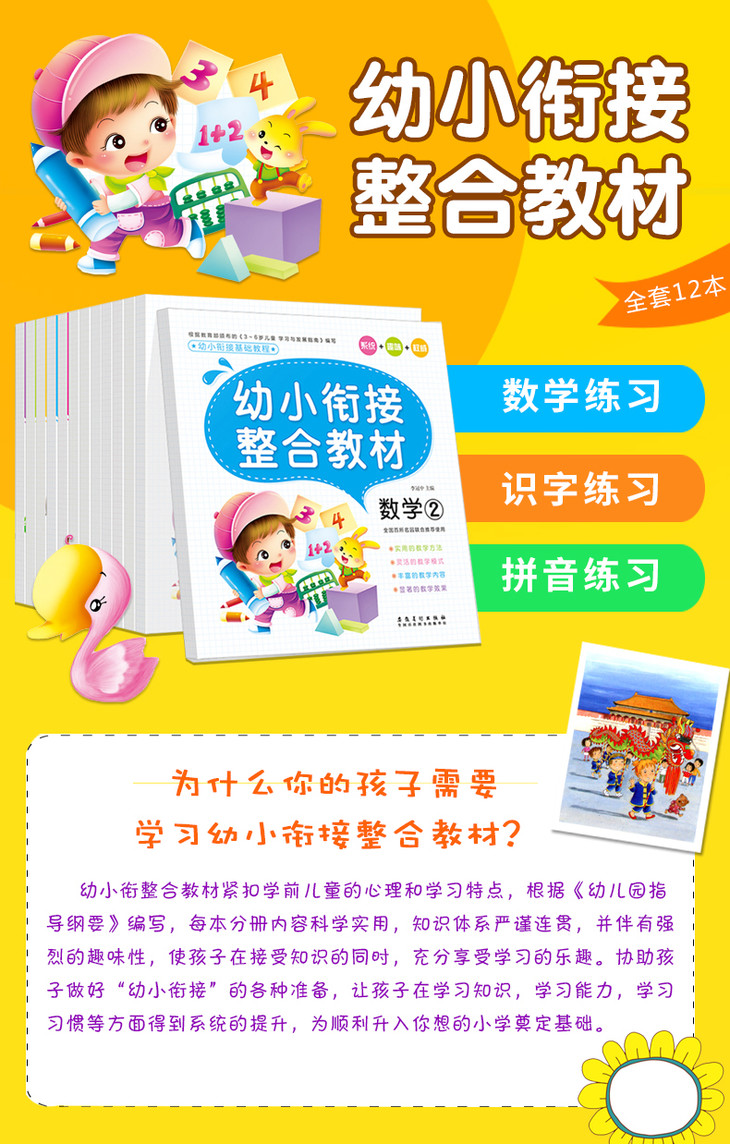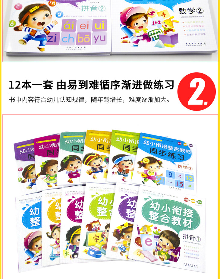 幼小衔接教材全套 幼升小12册一日一练拼音数学入学准备 学前班升一年级衔接拼音拼读训练 幼儿园大班练习册 天天练加减法基础语文