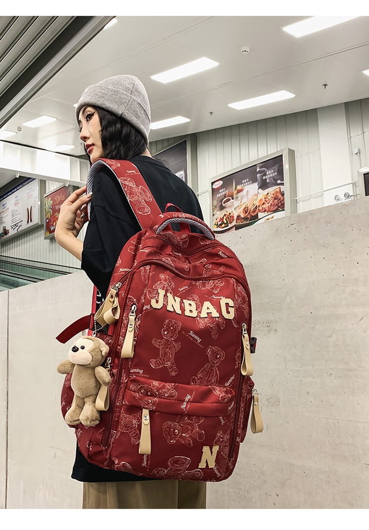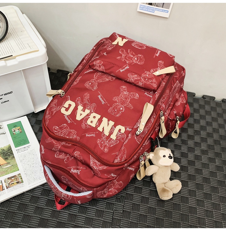 减负书包男生高中生大容量双肩包初中女生印花大学生休闲旅行背泡