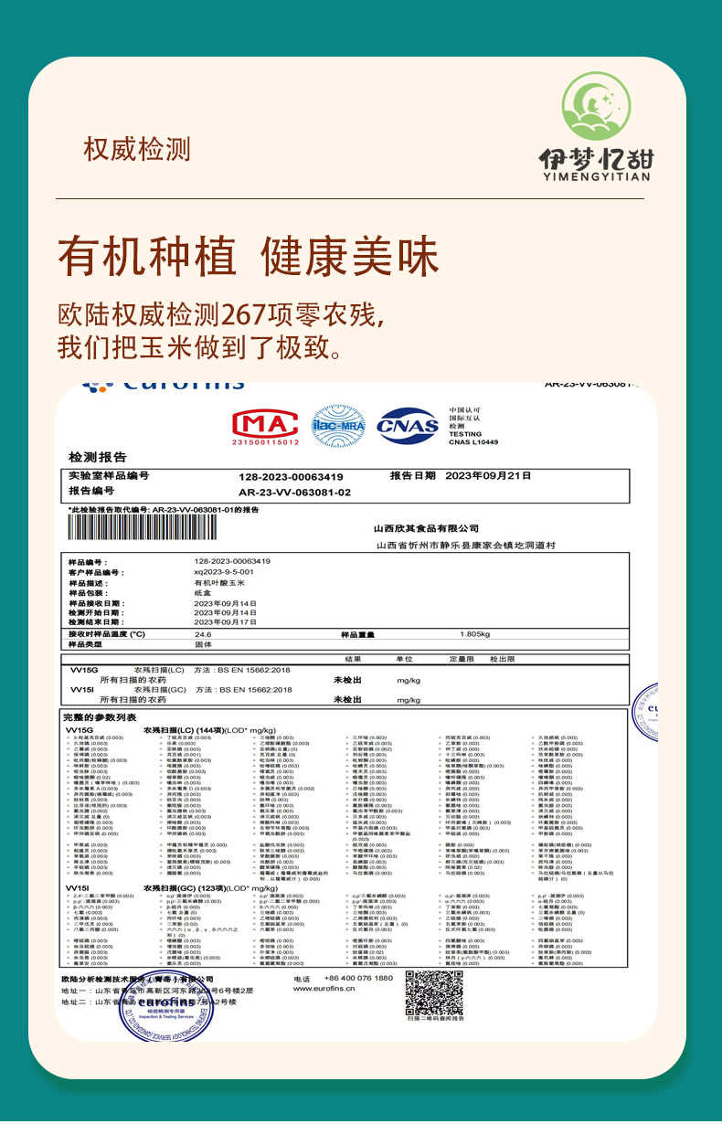 有机高叶酸玉米 267项0农残 3小时锁住新鲜 220g大穗真空包装 全家老小放心吃