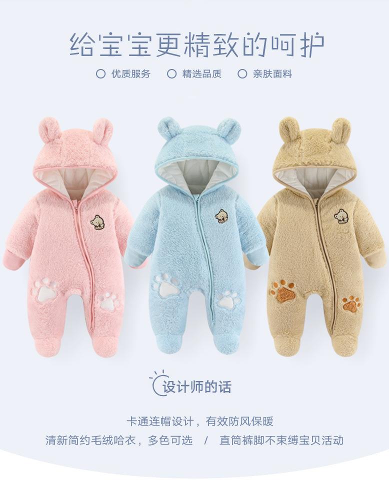新生婴儿连体衣秋冬季套装加棉加厚保暖棉衣服宝宝冬装包脚哈衣