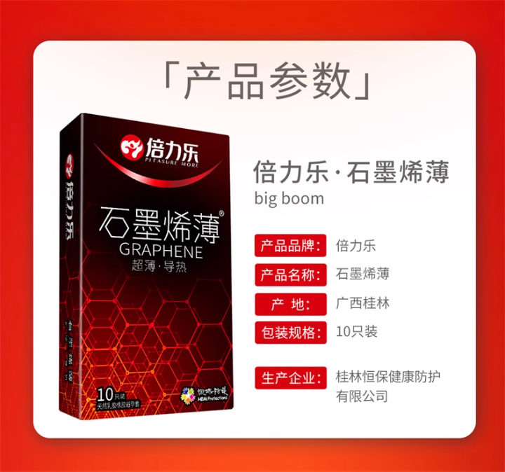 倍力乐避孕套石墨烯导热安全套男用成人套超薄0.01情趣大颗粒10只装
