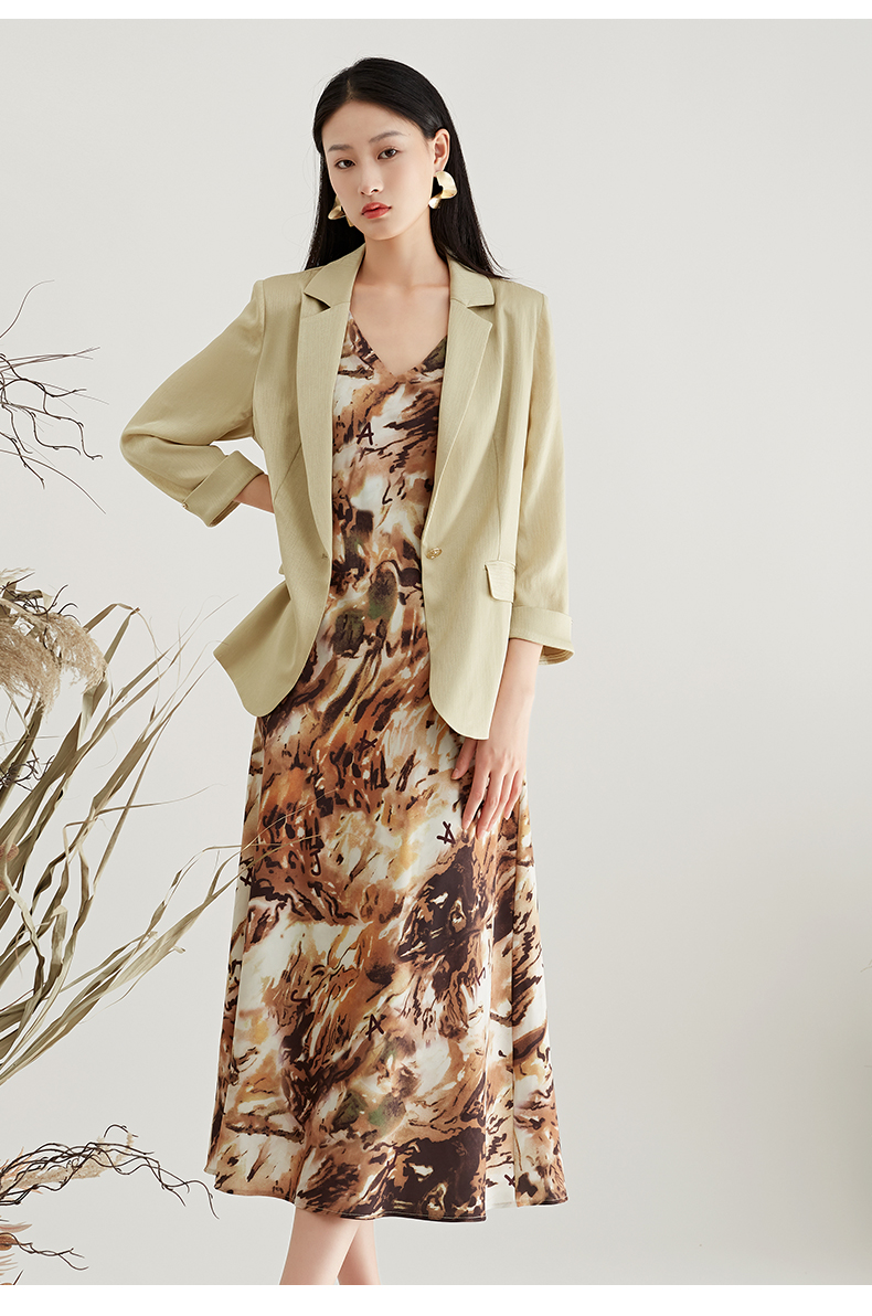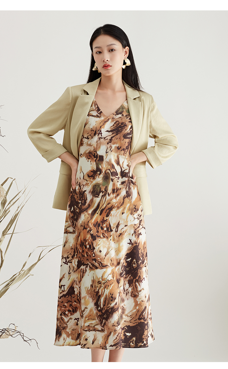 【特价不退换】阿菁娜优雅高级感印花吊带裙抽象水墨画V领连衣裙A27Q112060