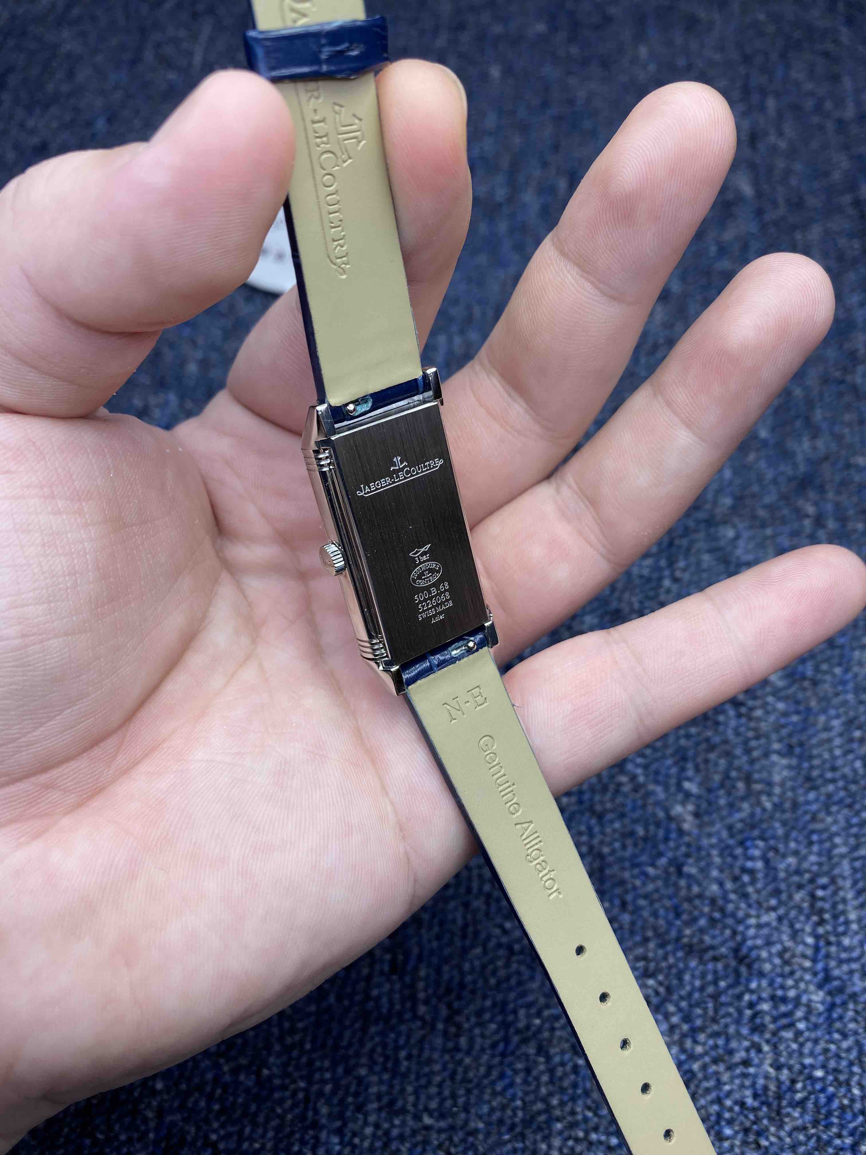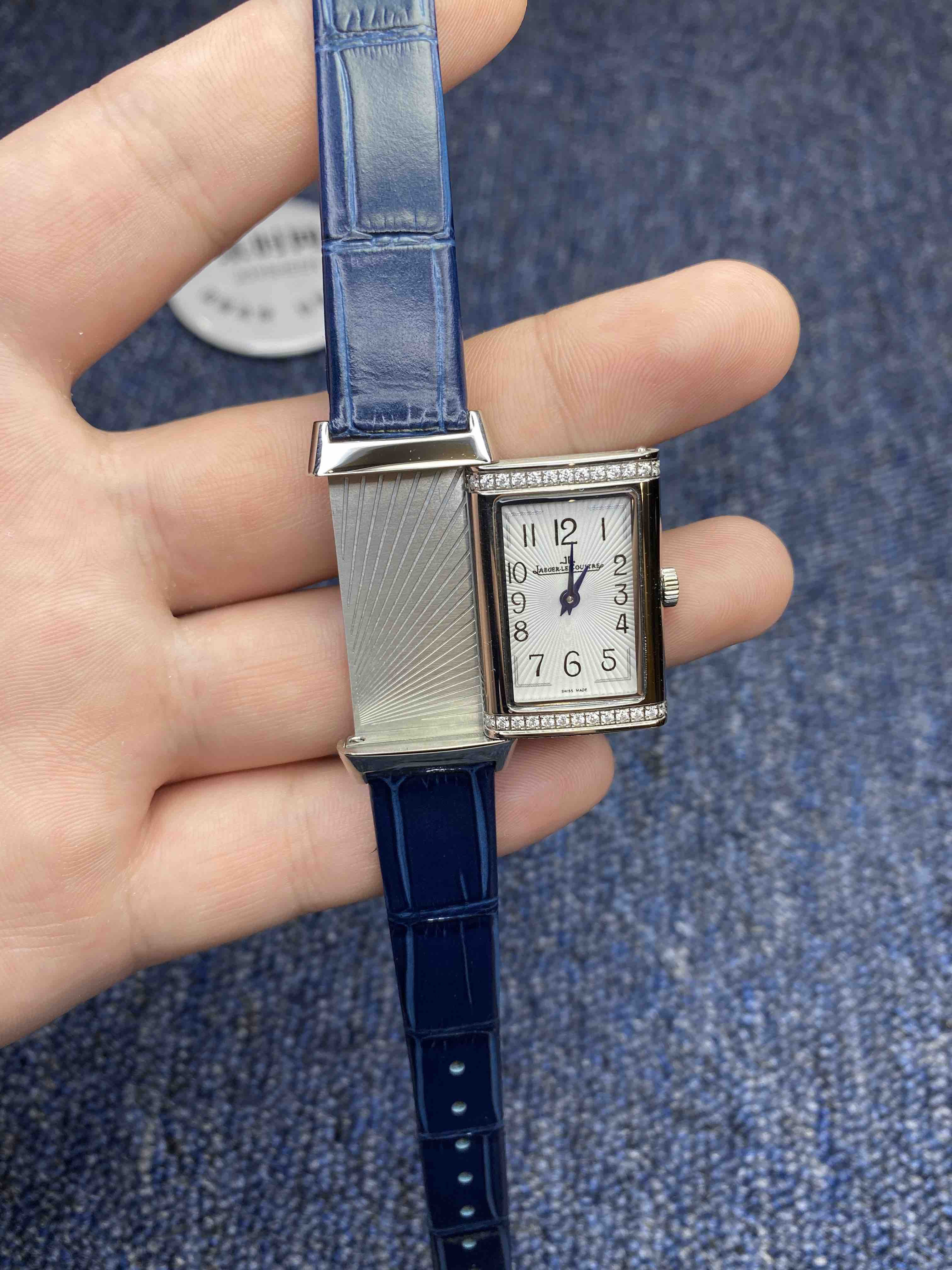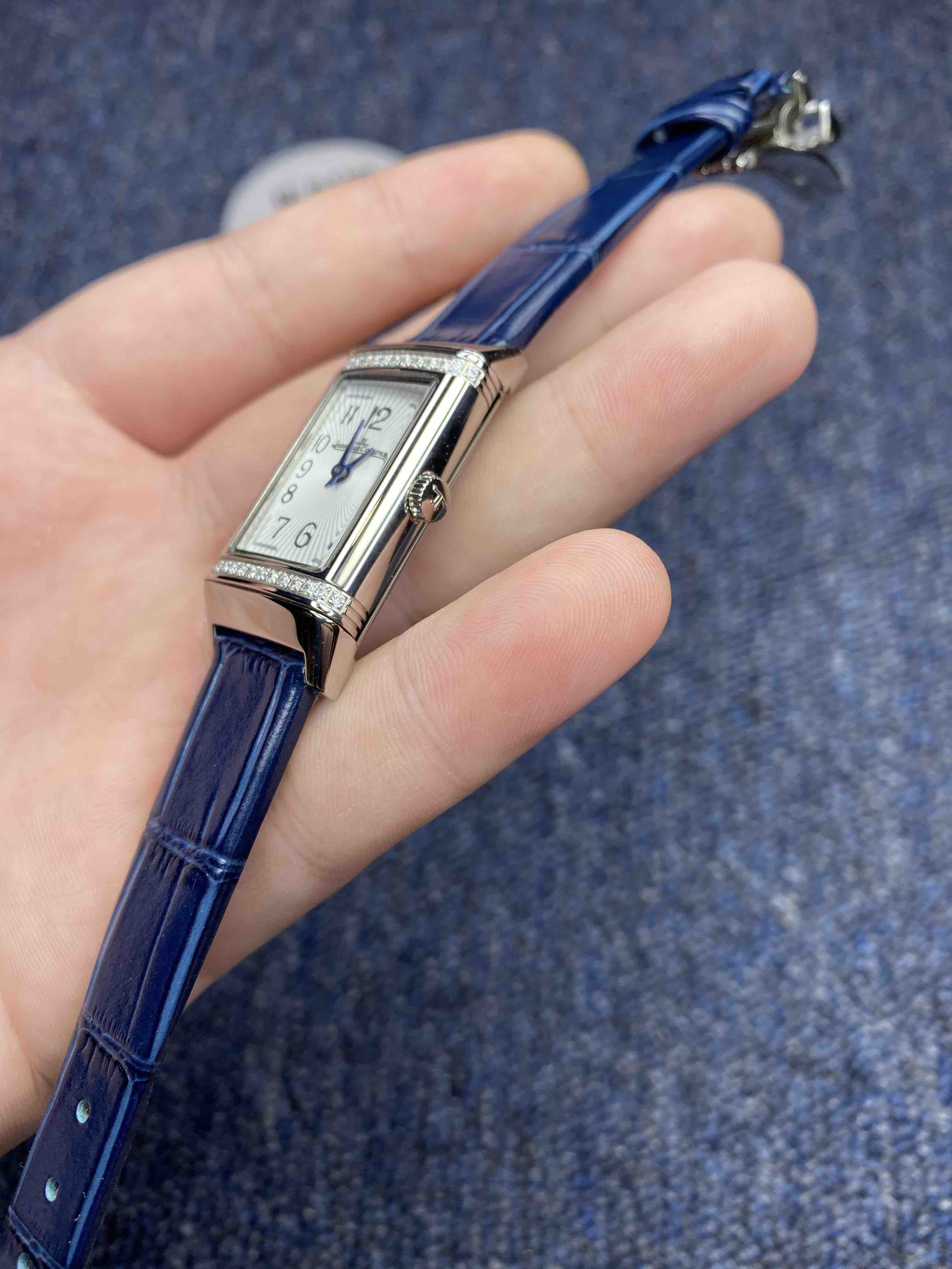 翻转真的是好看到爆炸积家翻转系列 低调有历史底蕴!表壳尺寸:40.1*20mm 搭载进口试用机芯稳定持久,烧钢蓝指针芳泽无加,午夜蓝色的小牛皮如精灵般俏皮可爱 ,加上原装折叠表扣,优雅的气质,精致的翻转结构,精美的做工,腕间璀璨美钻照亮倾心时刻,会让佩戴者赏心悦目,爱不释手。