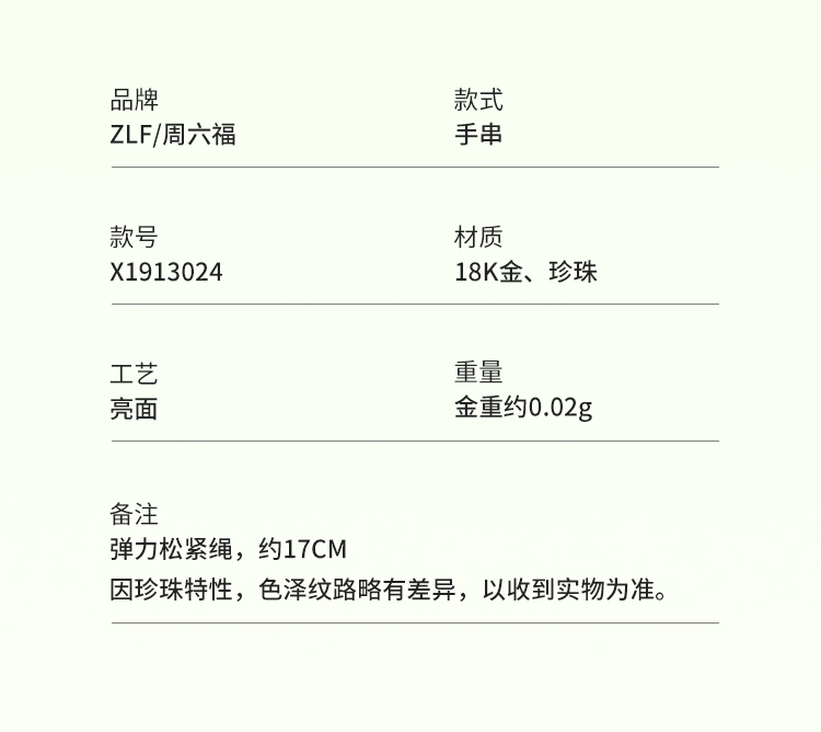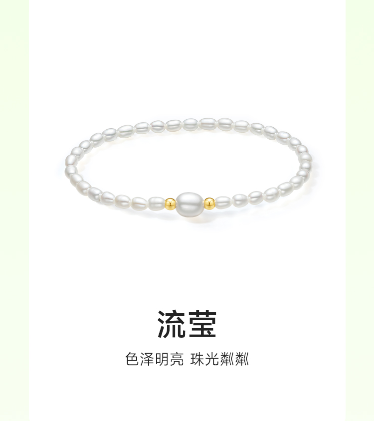 周六福18K金珍珠手串女款流莹优雅精致时尚小米珠小巧送女友礼物
