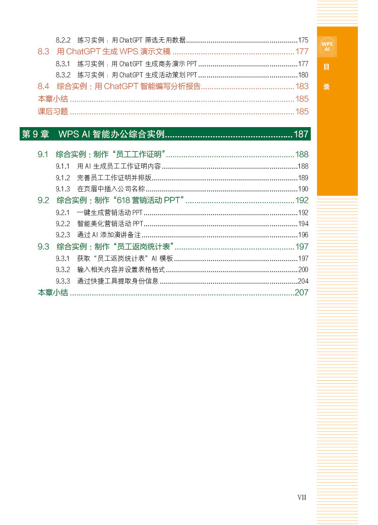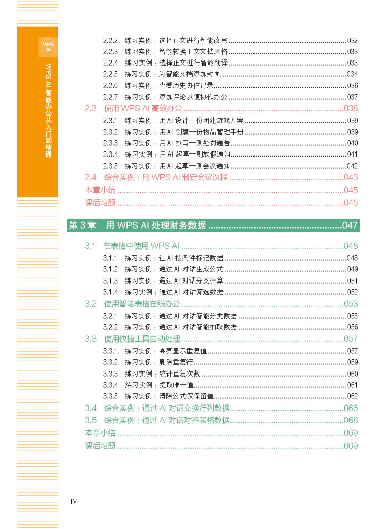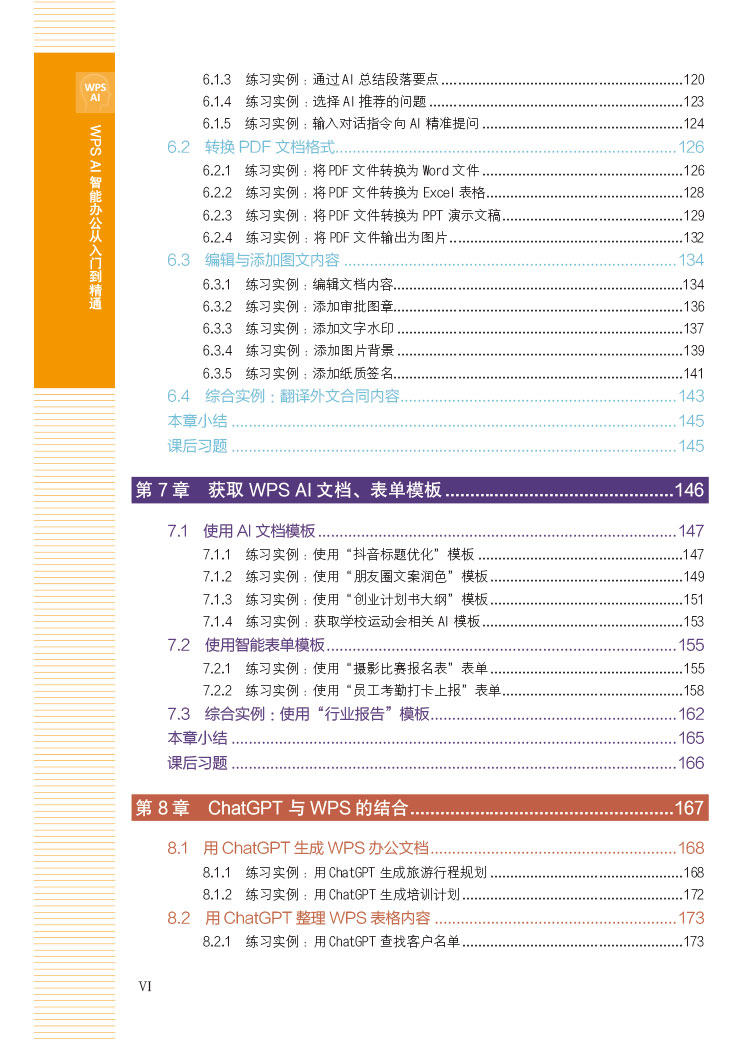 本书从基础概念入手,逐步引导读者深入了解WPS AI的功能应用和操作方法,并通过大量的练习实例和综合实例,帮助读者将理论知识转化为实践能力,从而快速精通WPS AI智能办公实战技术。 全书共9章,内容涵盖了WPS AI的各个方面,包括WPS AI账号权益的获取、软件的安装、模板的下载与使用和指令的使用与编写等方法。同时,从行政、人事、财务、商务等行业领域着手,介绍了 AI生文、AI排版、AI撰写通知、AI标记表格数据、AI智能分类、AI生成公式、AI一键生成 PPT、AI文档模板、AI分析PDF文档以及ChatGPT与WPS AI结合使用等关键内容,帮助读者全面掌握WPS AI 的应用技巧,从而能够在实际应用中发挥出更强的创造力,展现WPS AI办公的无限可能。 本书赠送大量的学习资料和资源。(1)随书赠送180多分钟同步教学视频。(2)随书赠送70 多组 AI办公生成指令。(3)随书赠送150多个素材效果源文件。本书内容讲解精辟,实例丰富多样,图片精美,适合以下人群阅读:一是需要经常使用WPS Office等办公软件的人员;二是广大职场人士,如行政、人事、财务、电商、自媒体运营等从业人员;三是相关培训机构、职业院校的学生。