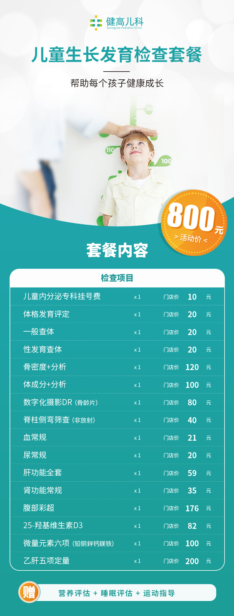 儿童生长发育检查套餐