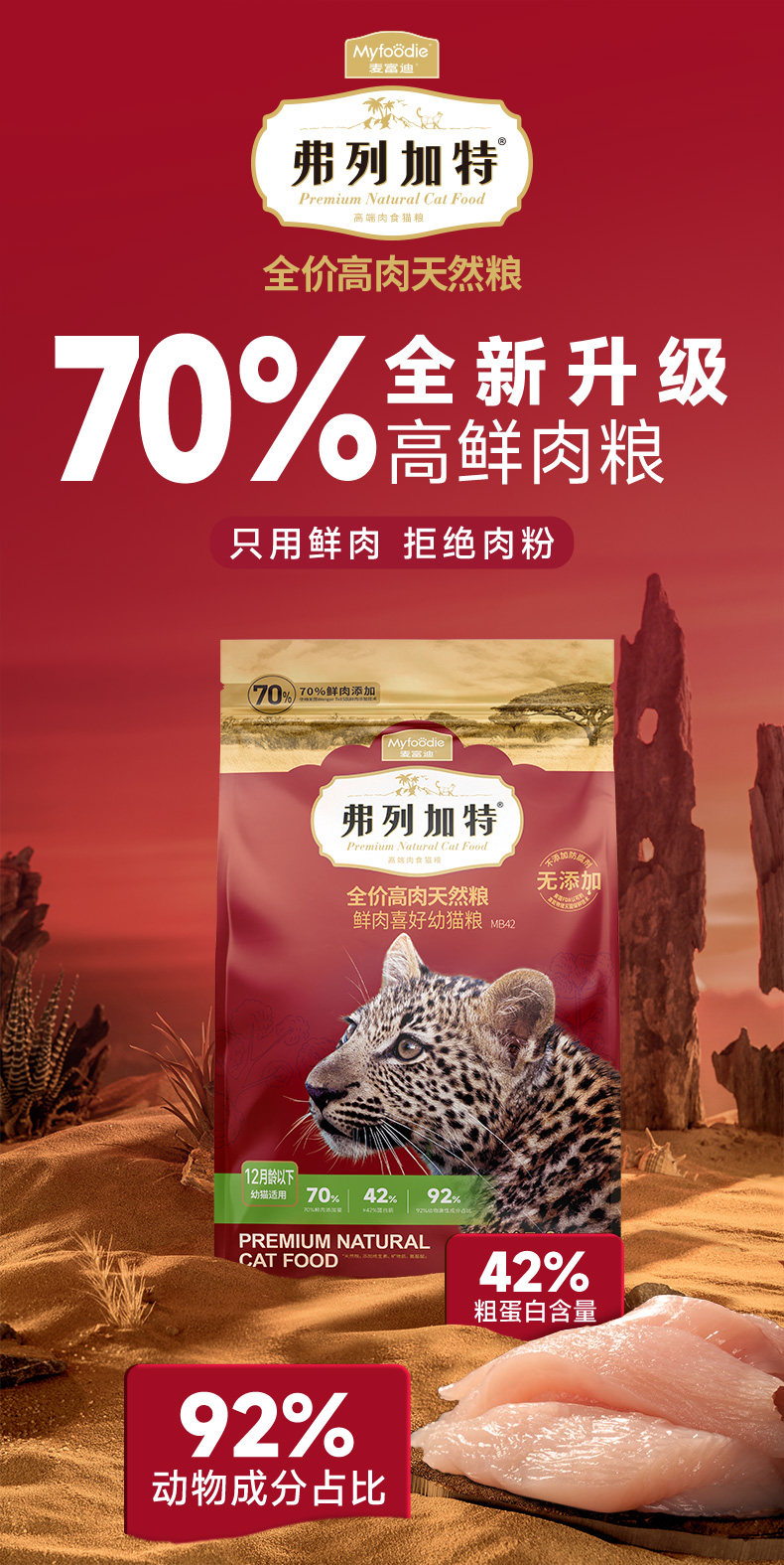 弗列加特高肉鲜肉喜好幼猫/成猫粮(鸡肉味)升级款2kg/8kg
