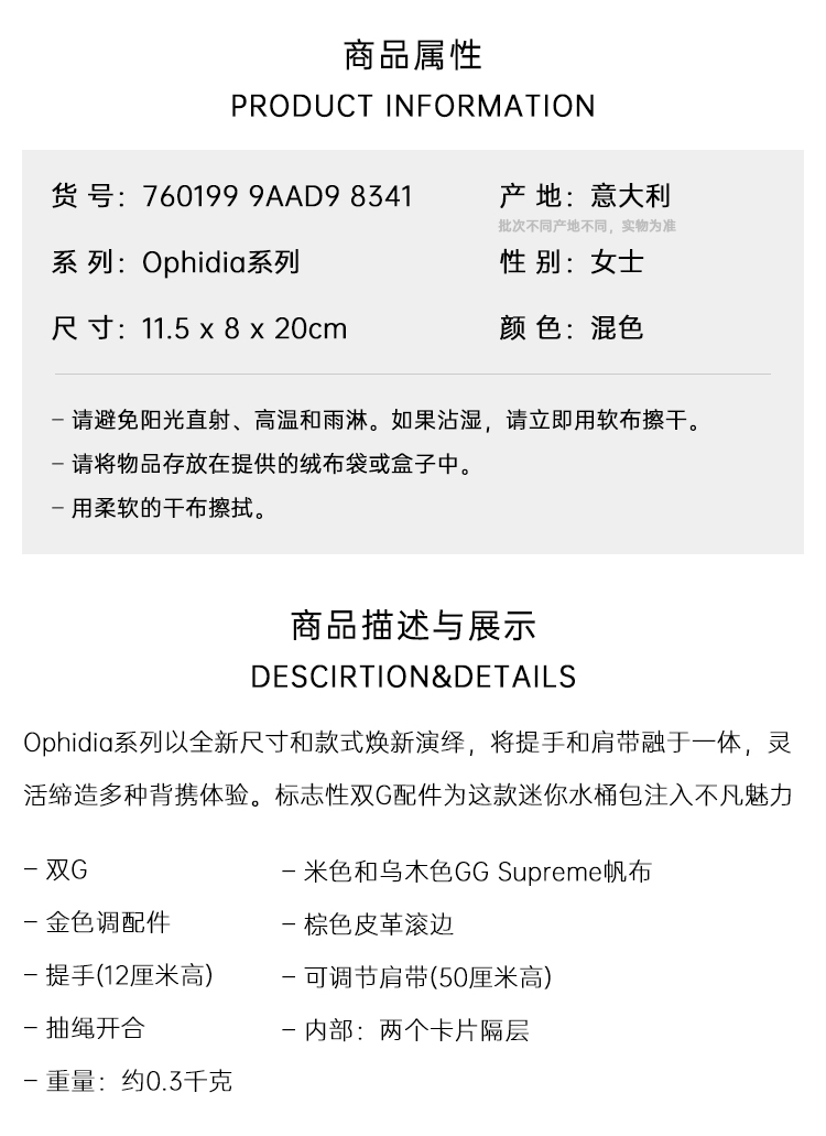 GUCCI 古驰 女士 Ophidia系列 迷你水桶包 混色 760199 9AAD9 8341