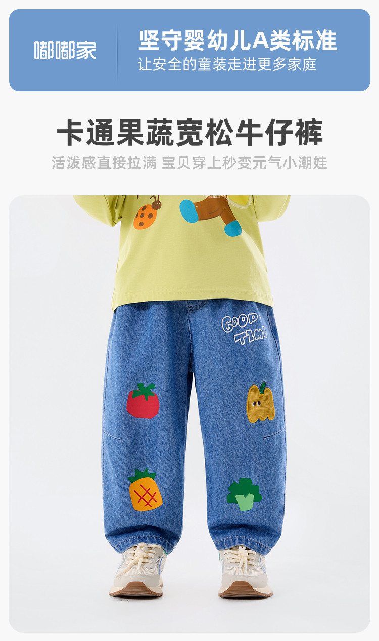 嘟嘟家男童牛仔裤26春季新款儿童卡通裤子春装女童休闲裤洋气童装F6AKZ044