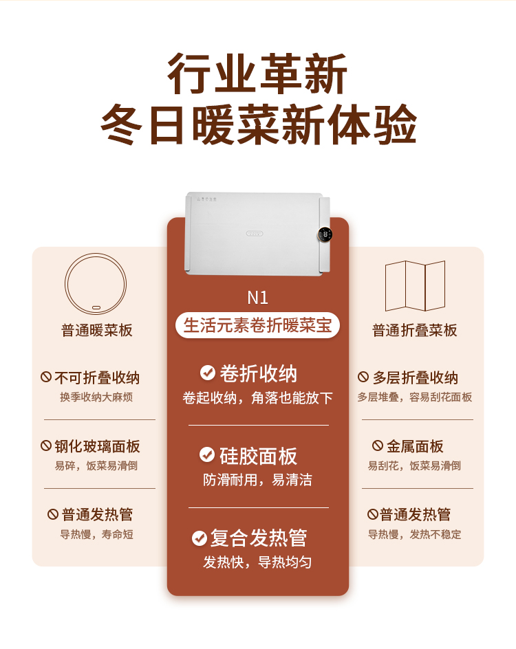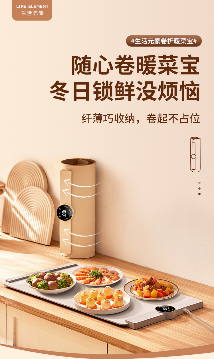 【生活元素N1暖菜板】家用热菜板 柔性可折叠保温硅胶加热菜板 恒温暖菜板【鱼圈vip福利】