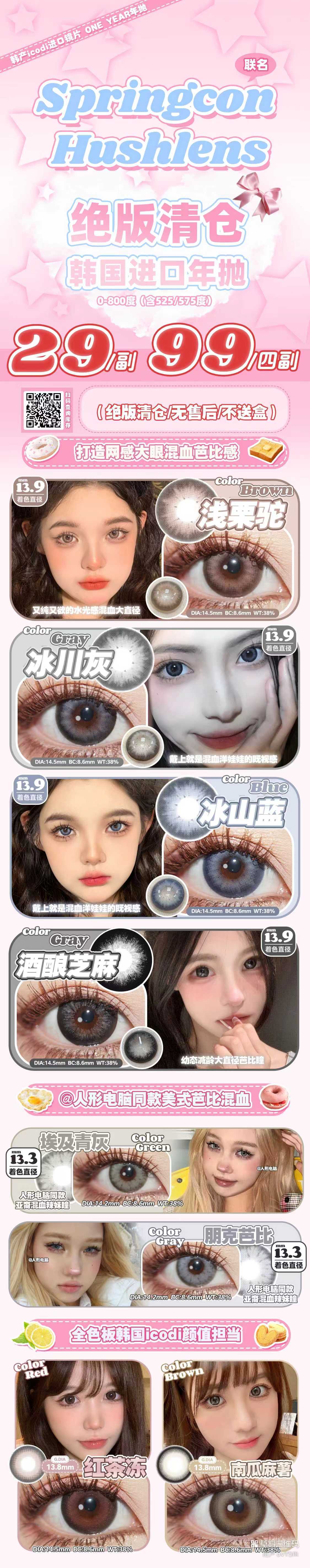 [韩国美瞳] hushlens&springcon清仓 韩产高端 韩产年抛 一副(2片)
