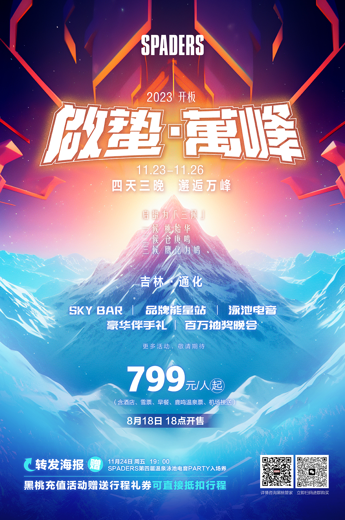 【啟蟄 | 23/24雪季开板】通化·万峰11月23日-11月26日 包机机票专属链接