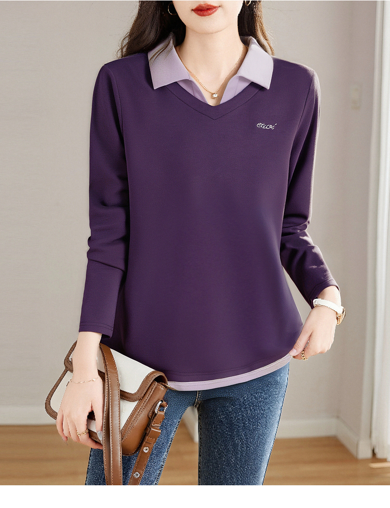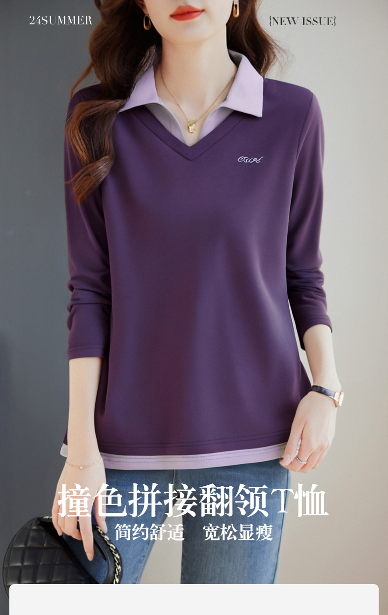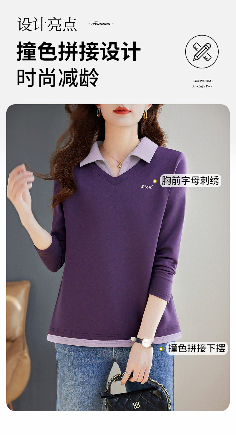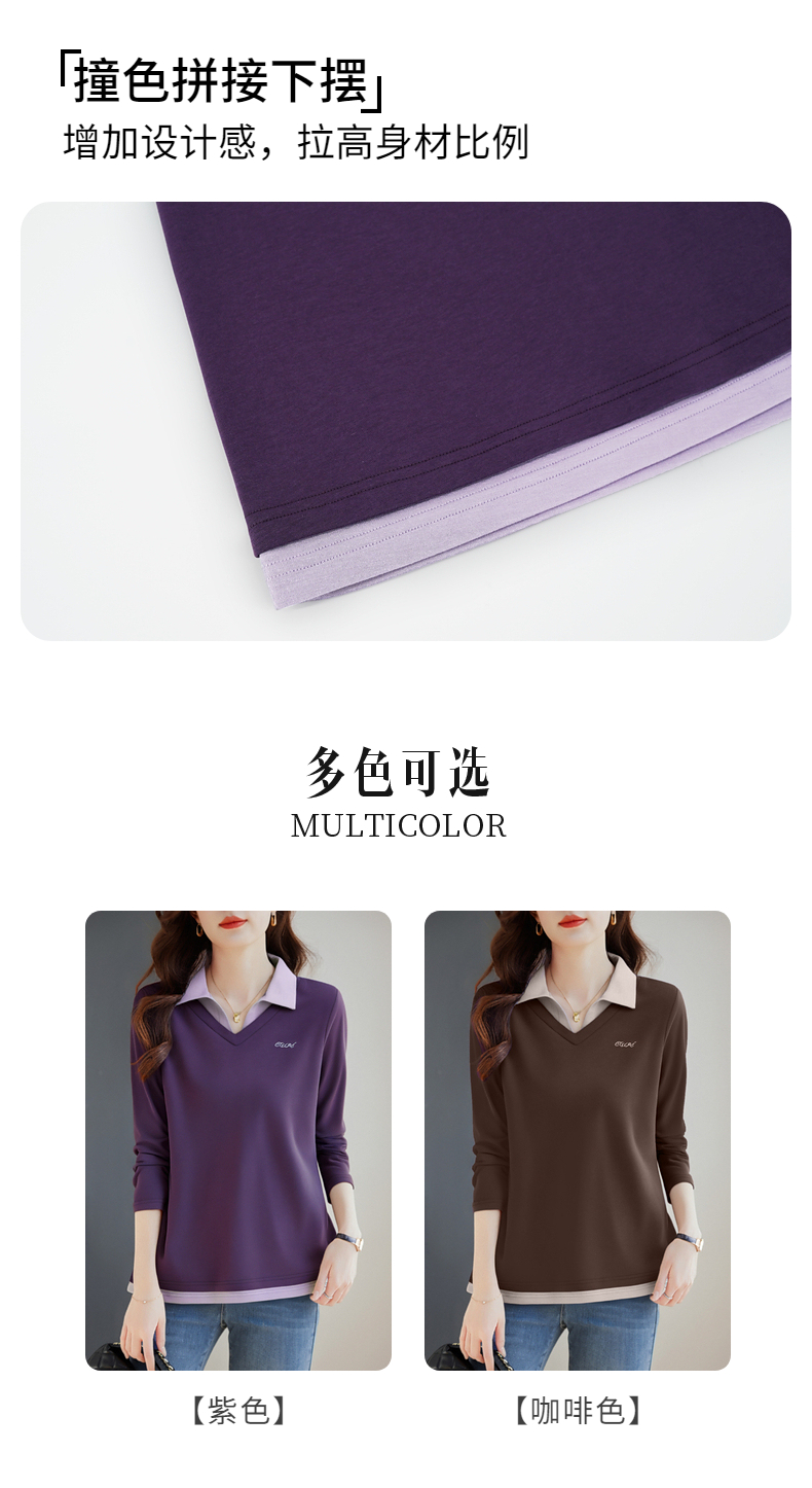 假两件长袖t恤女士2026新款秋季大码女装时尚洋气polo衫上衣外穿