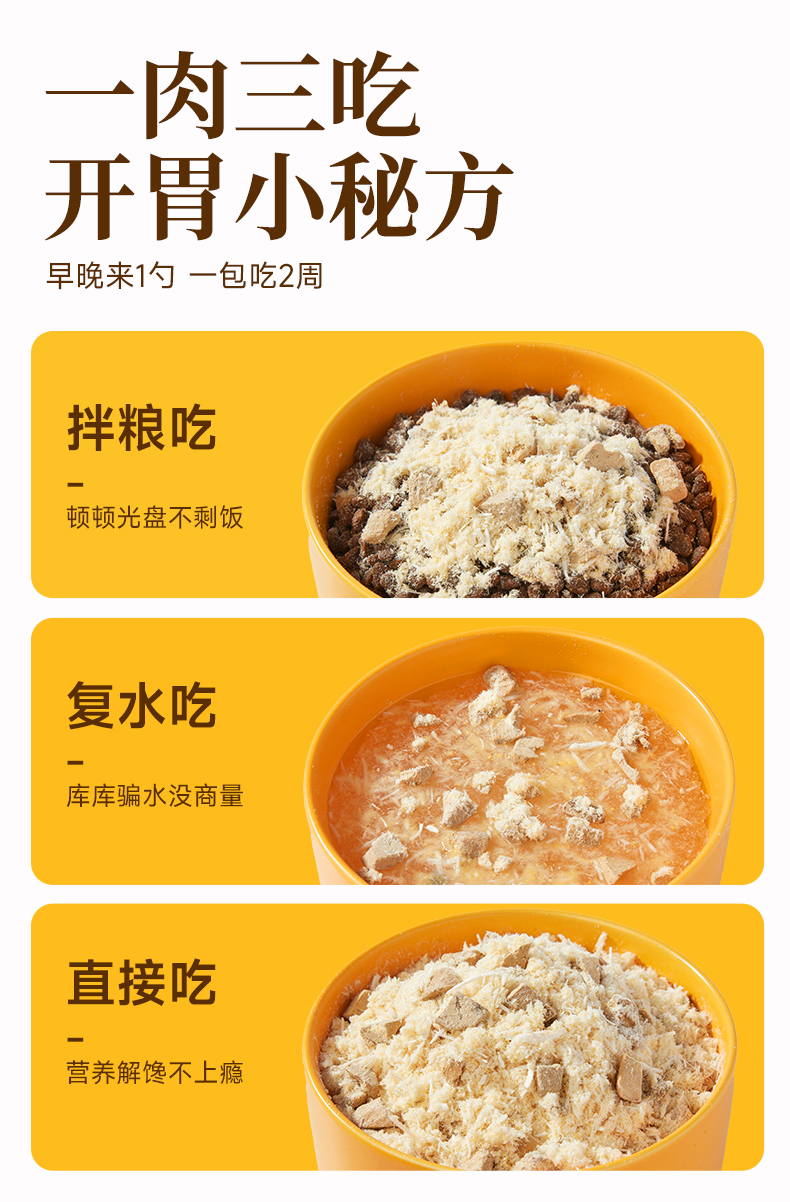 【新品三鲜拌饭肉松】50%鲜鸡肉 30%鲜鸡肝 20%鲜蛋黄 蓬松肉松 可见肉丝 一肉三吃 拌粮吃 复水吃 直接吃