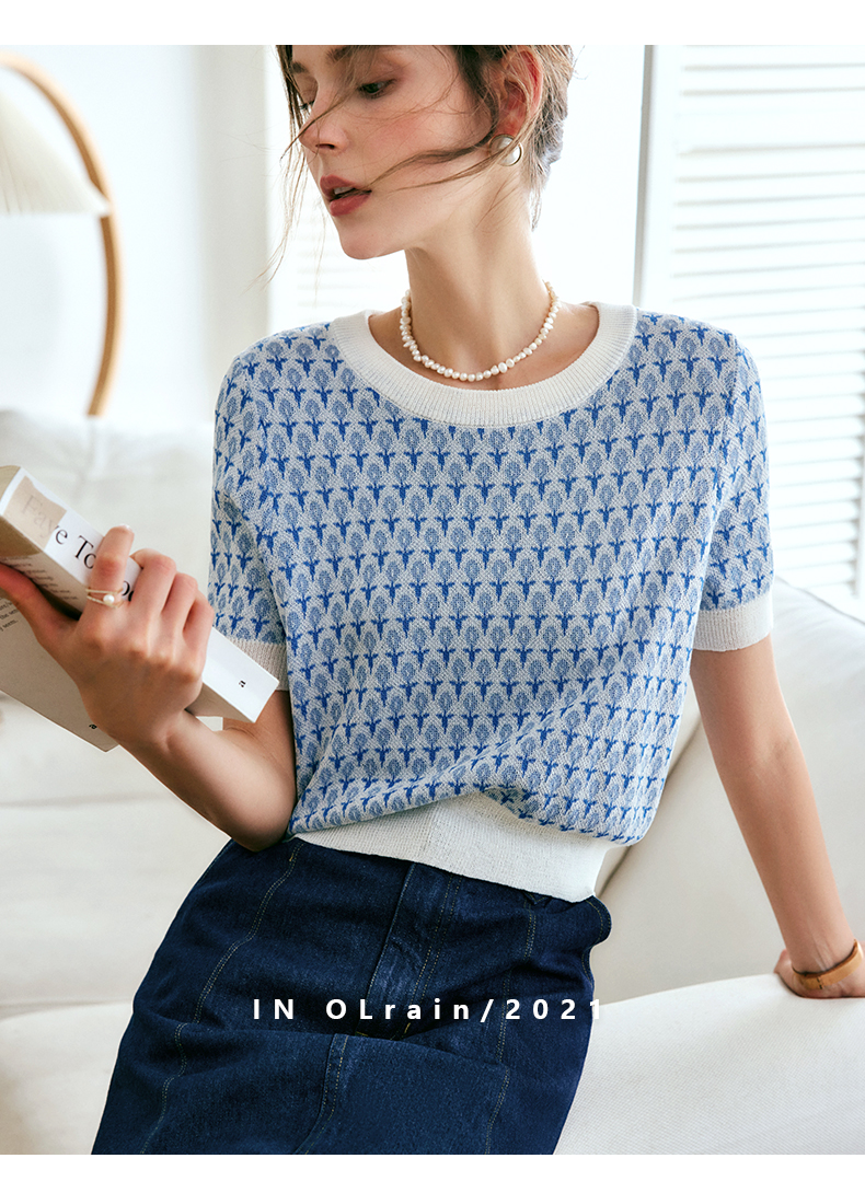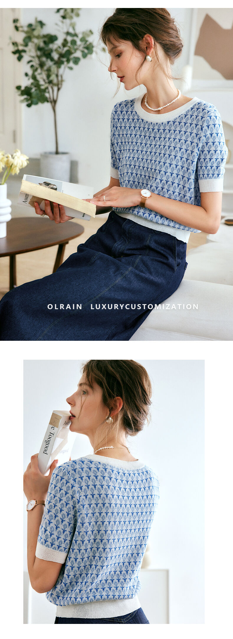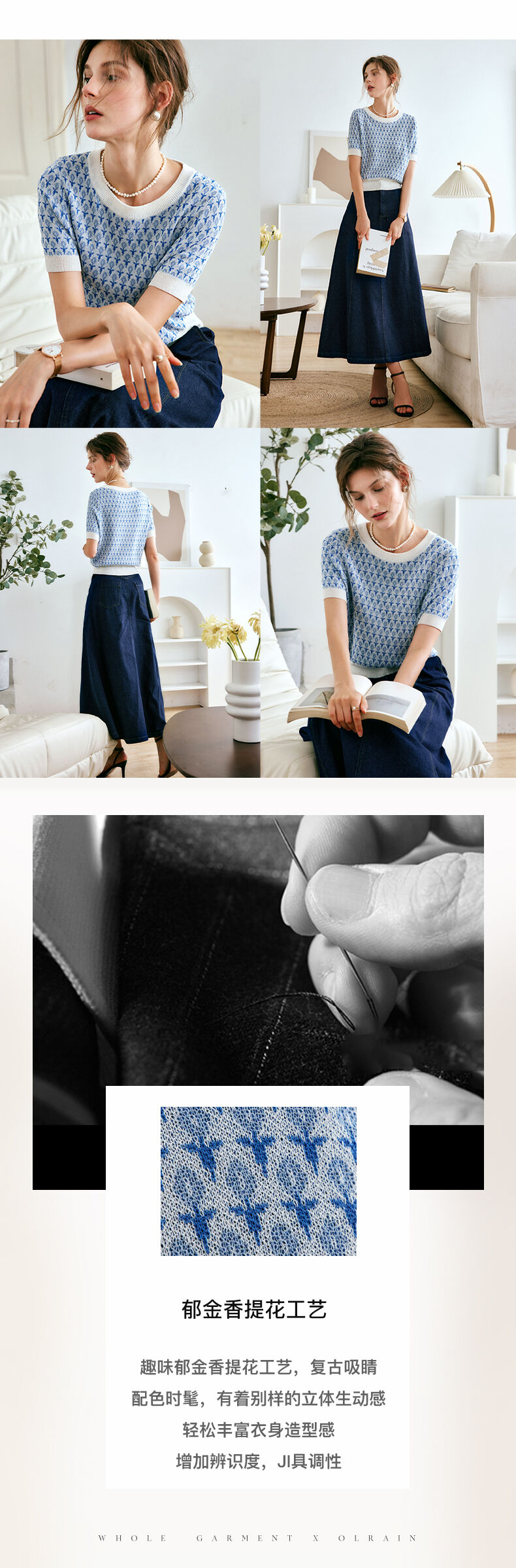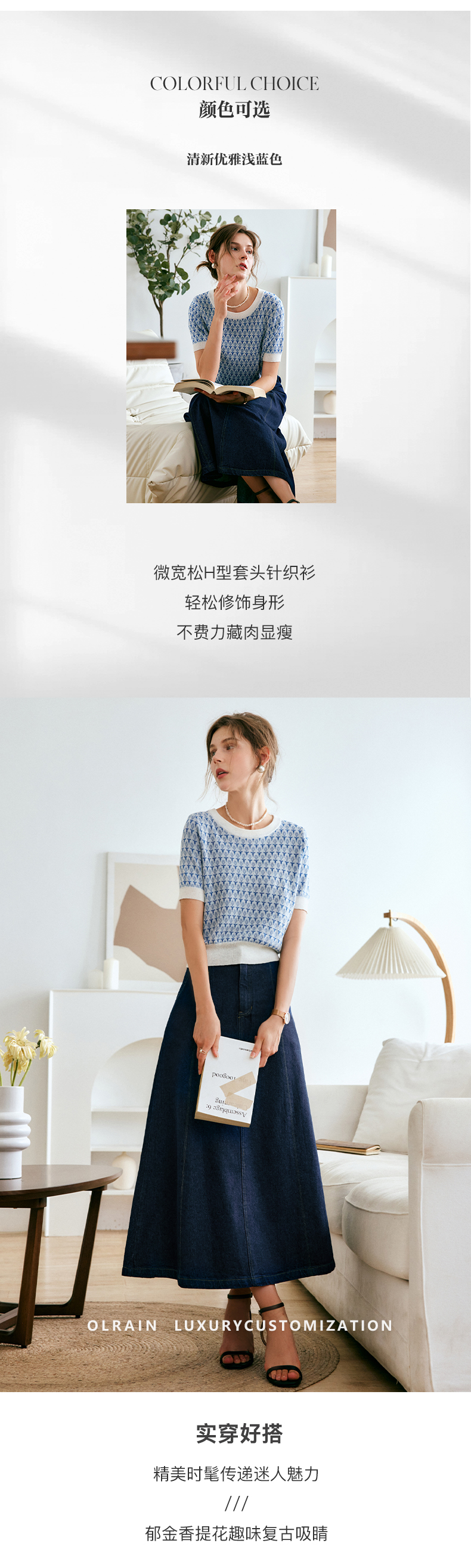 欧芮儿OLrain法式高级菱格提花针织衫女夏季2022新款冰爽套头衫