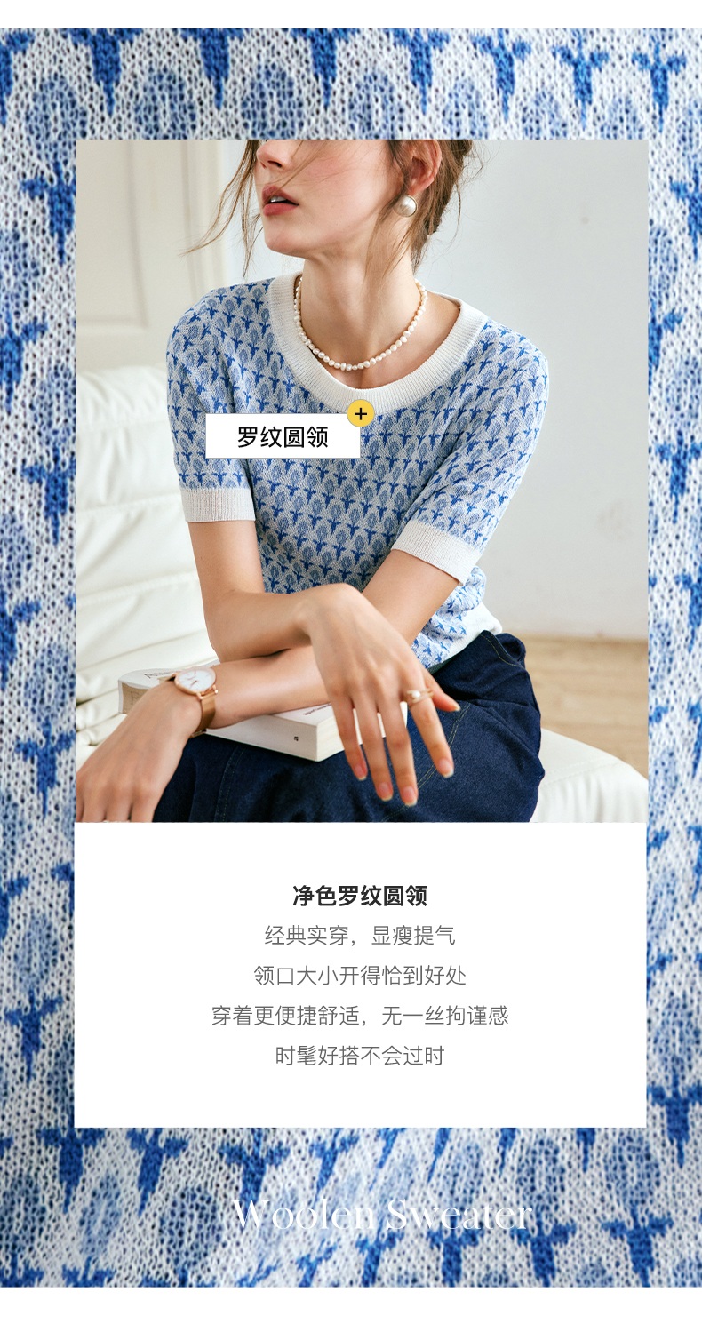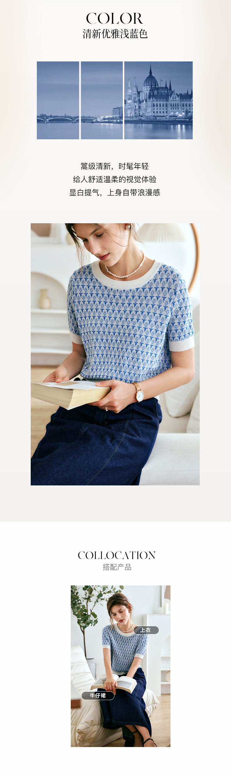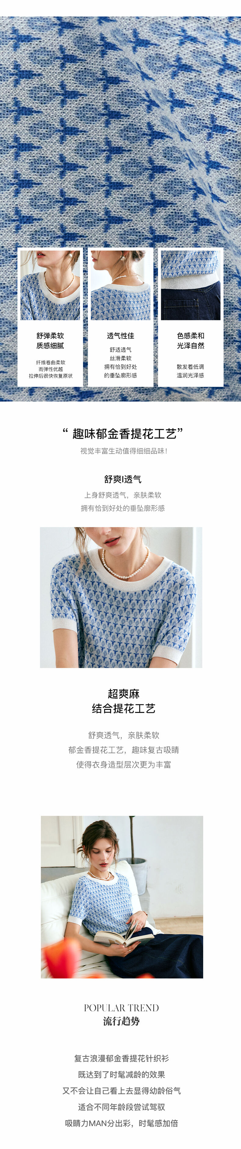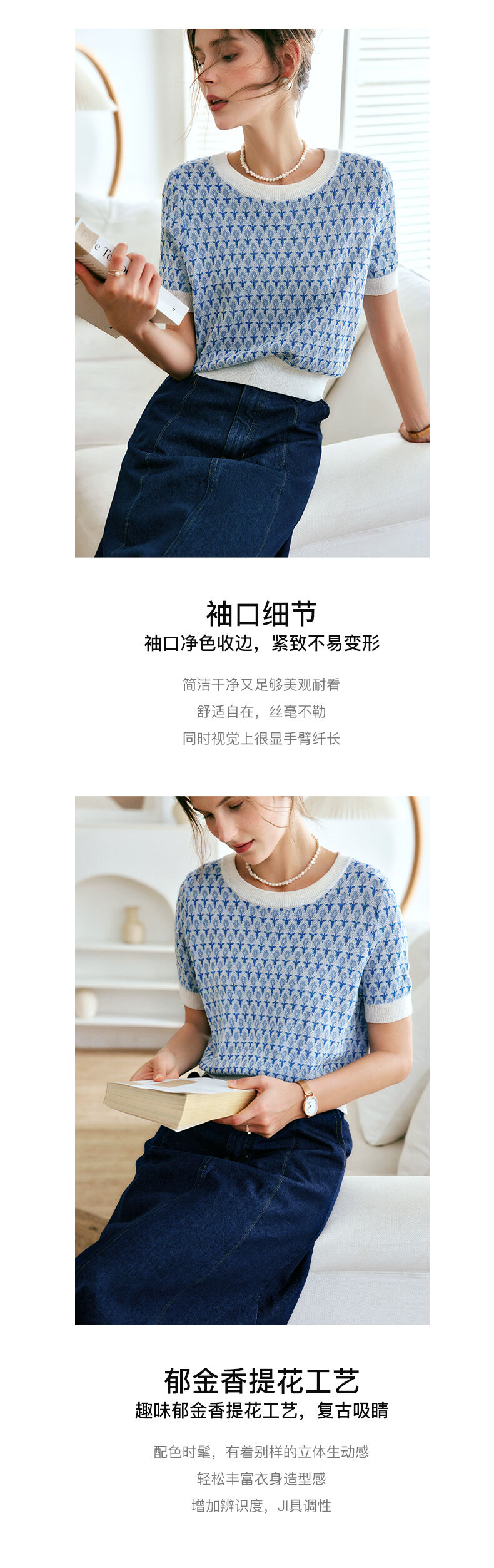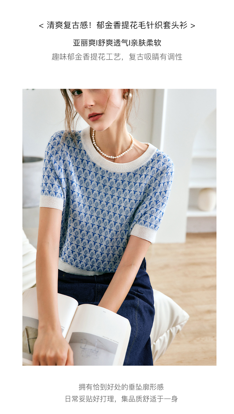 欧芮儿OLrain法式高级菱格提花针织衫女夏季2022新款冰爽套头衫