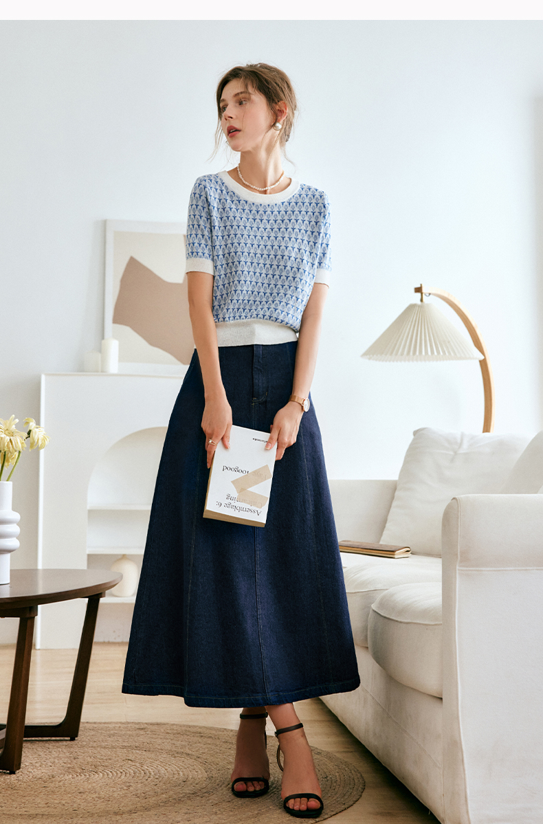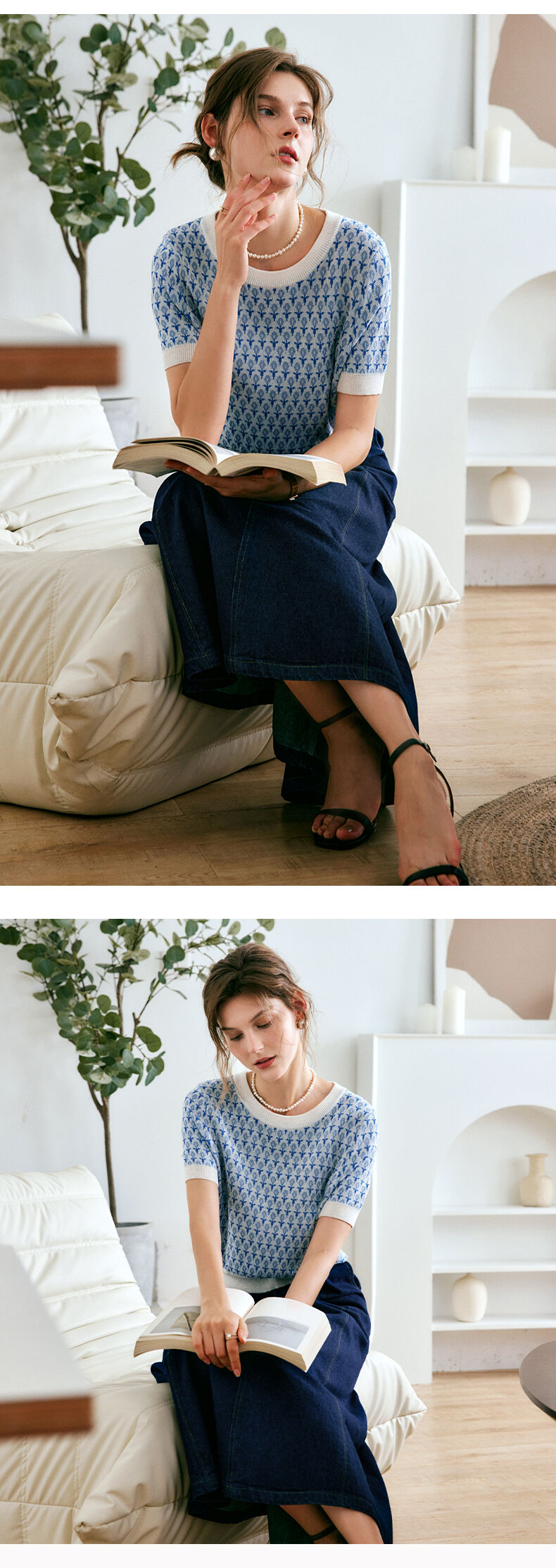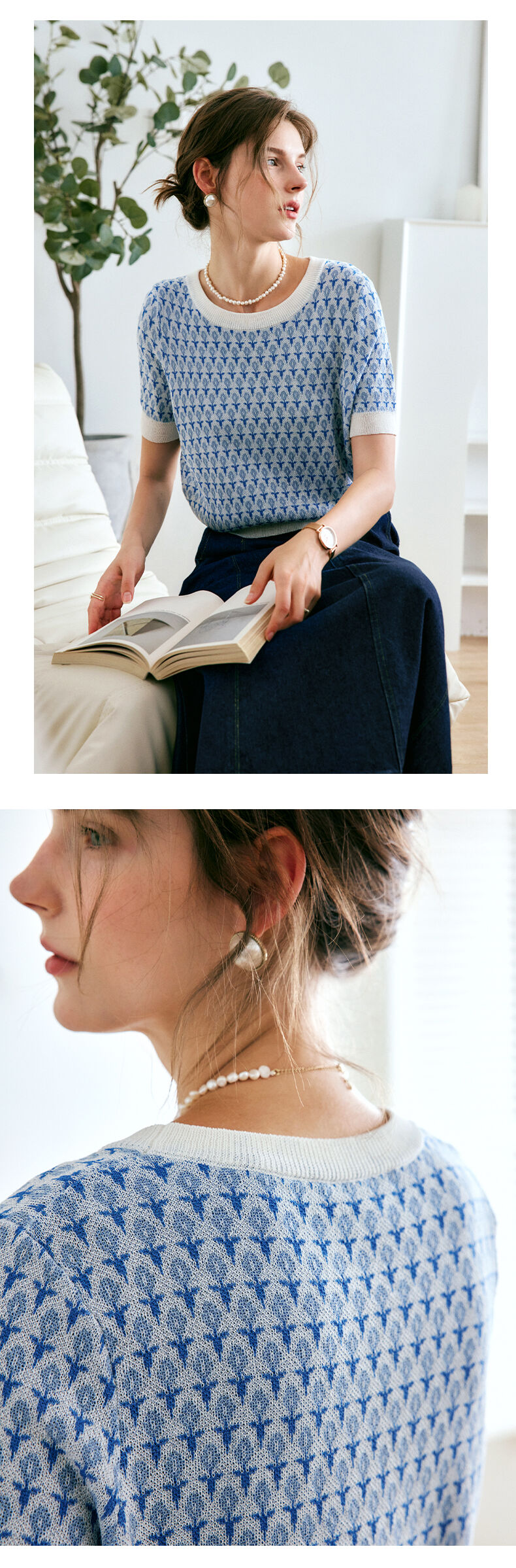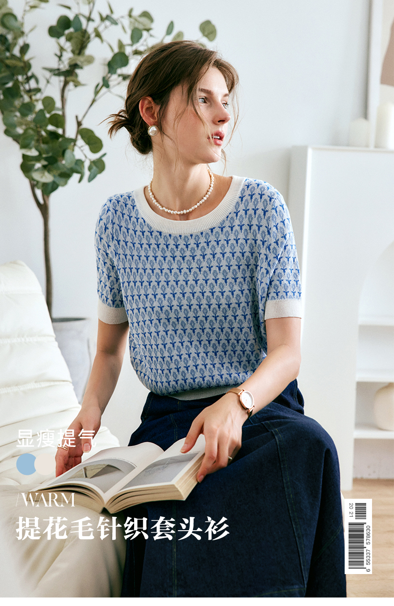 欧芮儿OLrain法式高级菱格提花针织衫女夏季2022新款冰爽套头衫