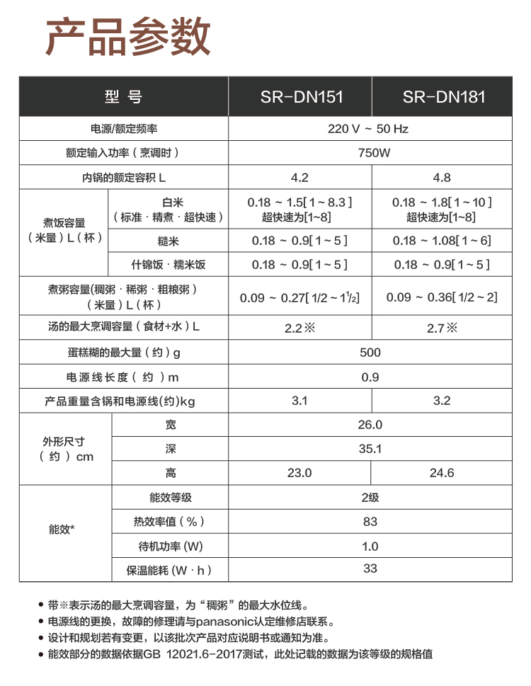 8月内购 松下电饭煲5升 SR-DN181/SR-DN151