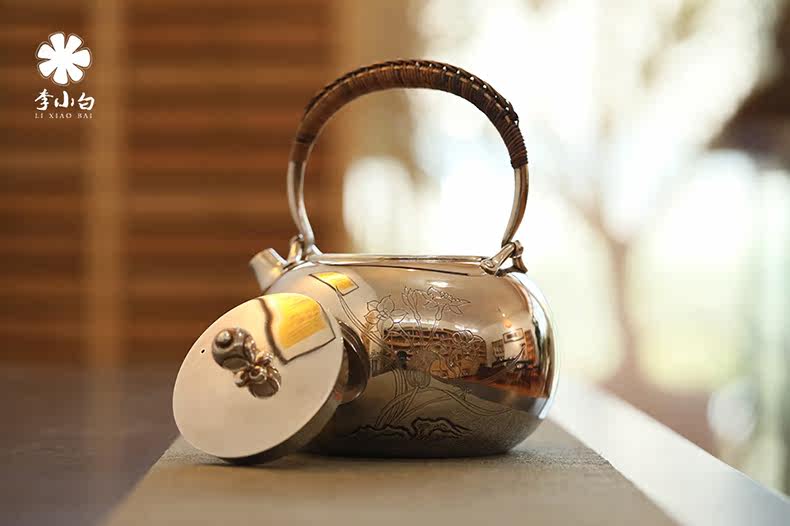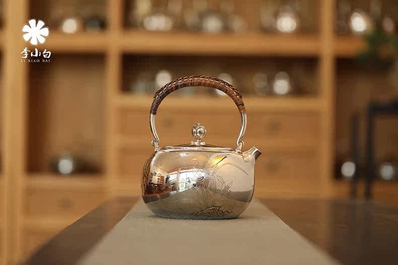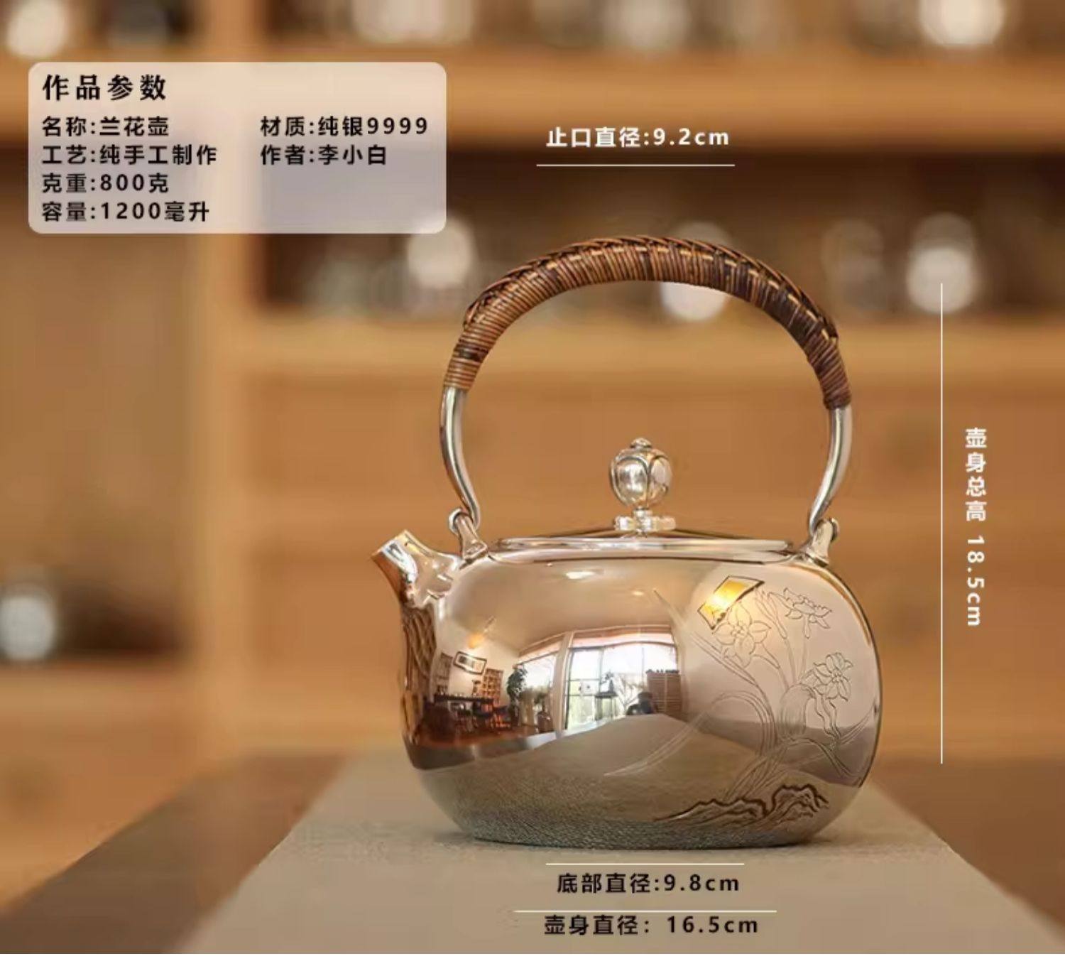 李小白银壶 纯银9999烧水壶 银壶烧水壶 烧水银壶 银壶 茶壶 兰花壶