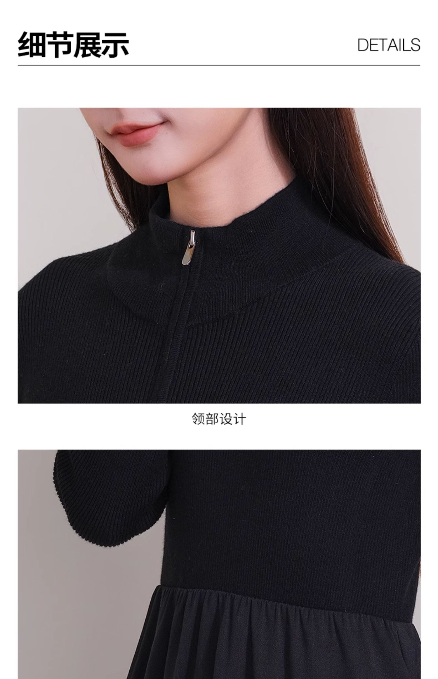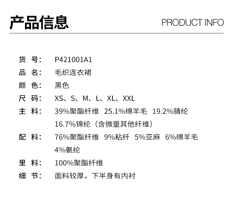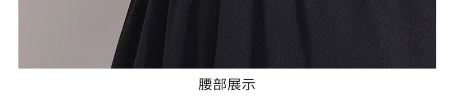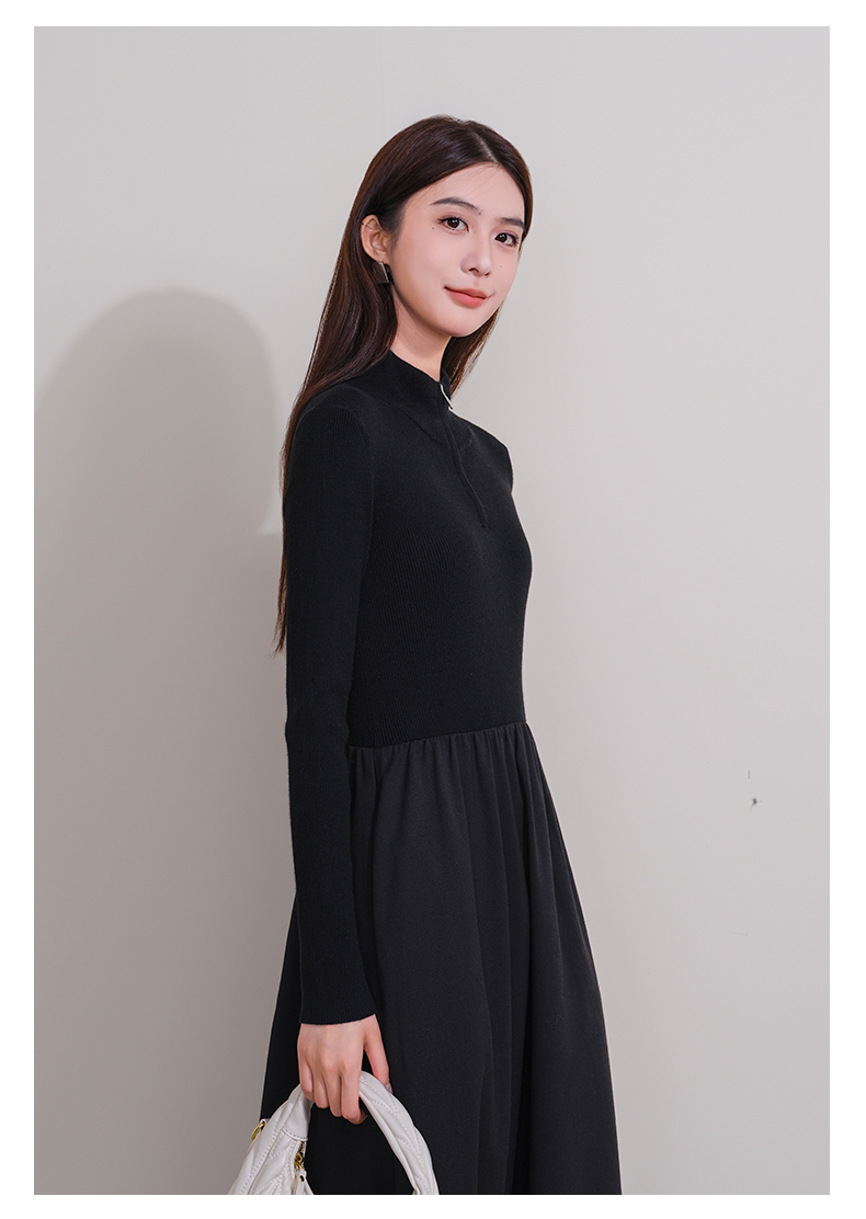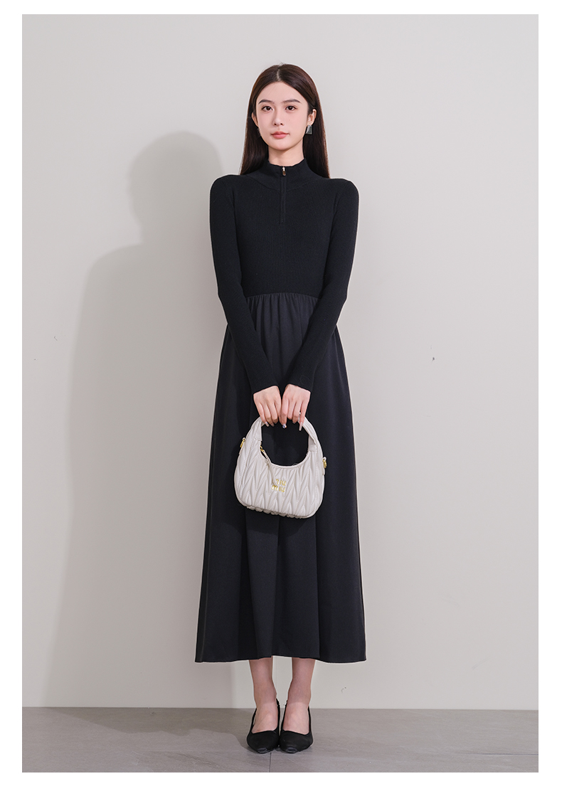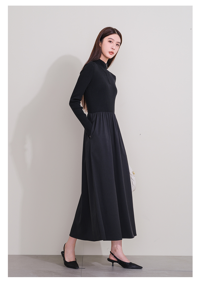 oldcolour冬季新款黑色拼接修身高腰A字长款针织连衣裙P421001A1
