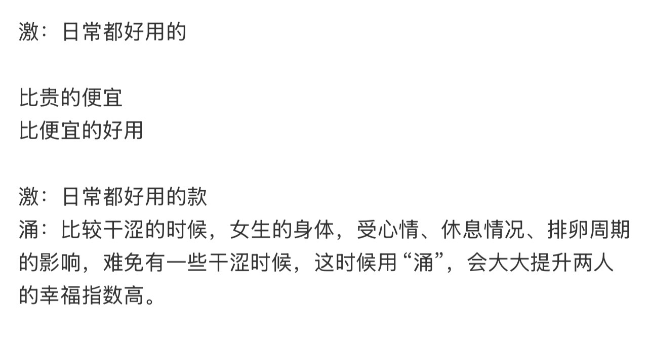 doi起来,很润滑!不会做个十来分钟tt变得像橡胶手套摩肉,下面摩擦的疼。杜蕾斯有多负面教材我就不展开说了了,杜蕾斯全靠它的文案
