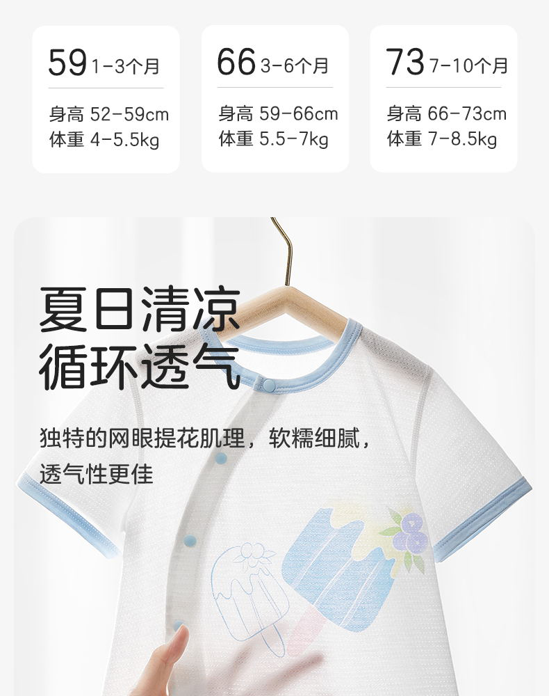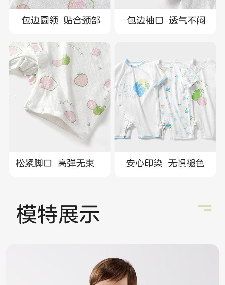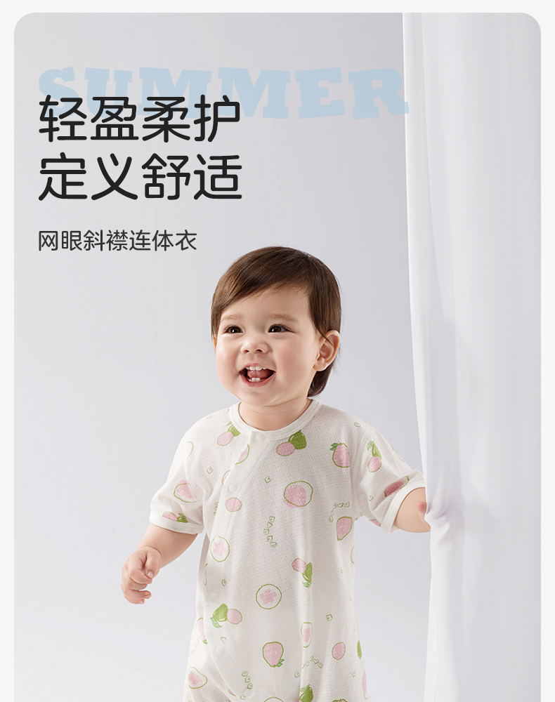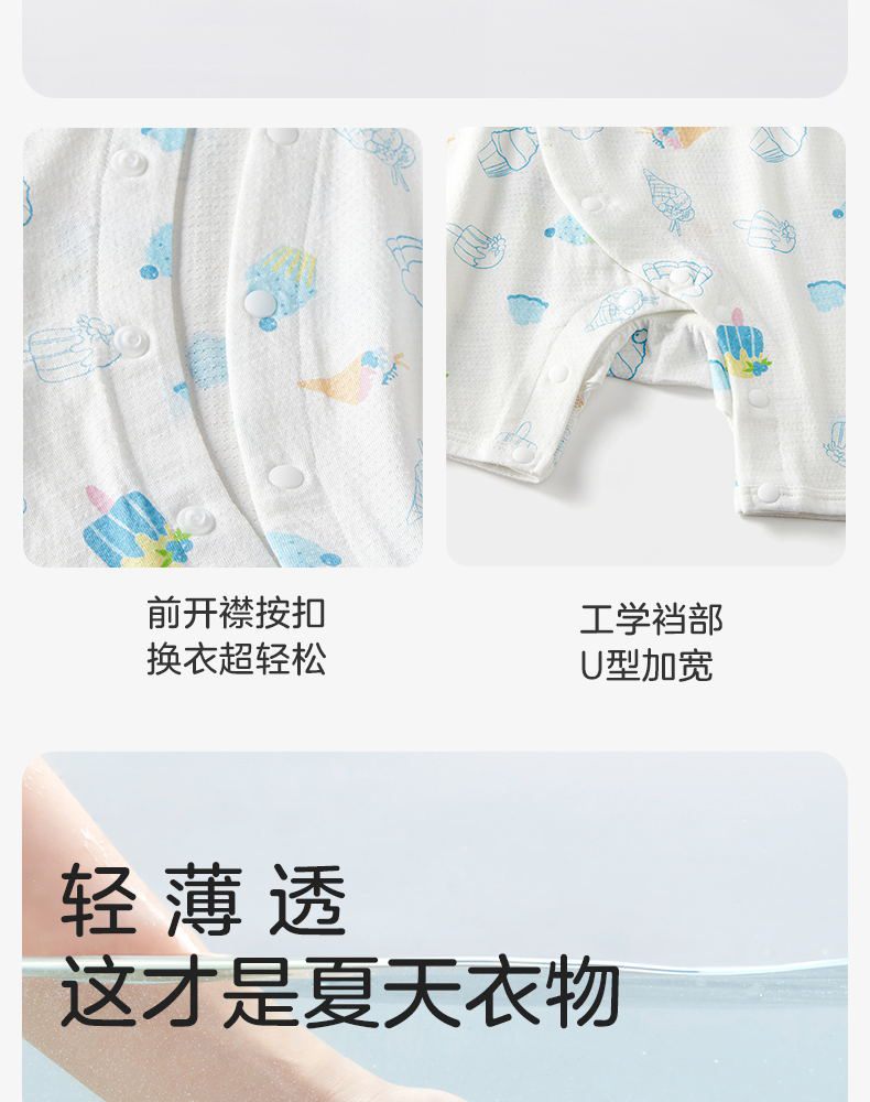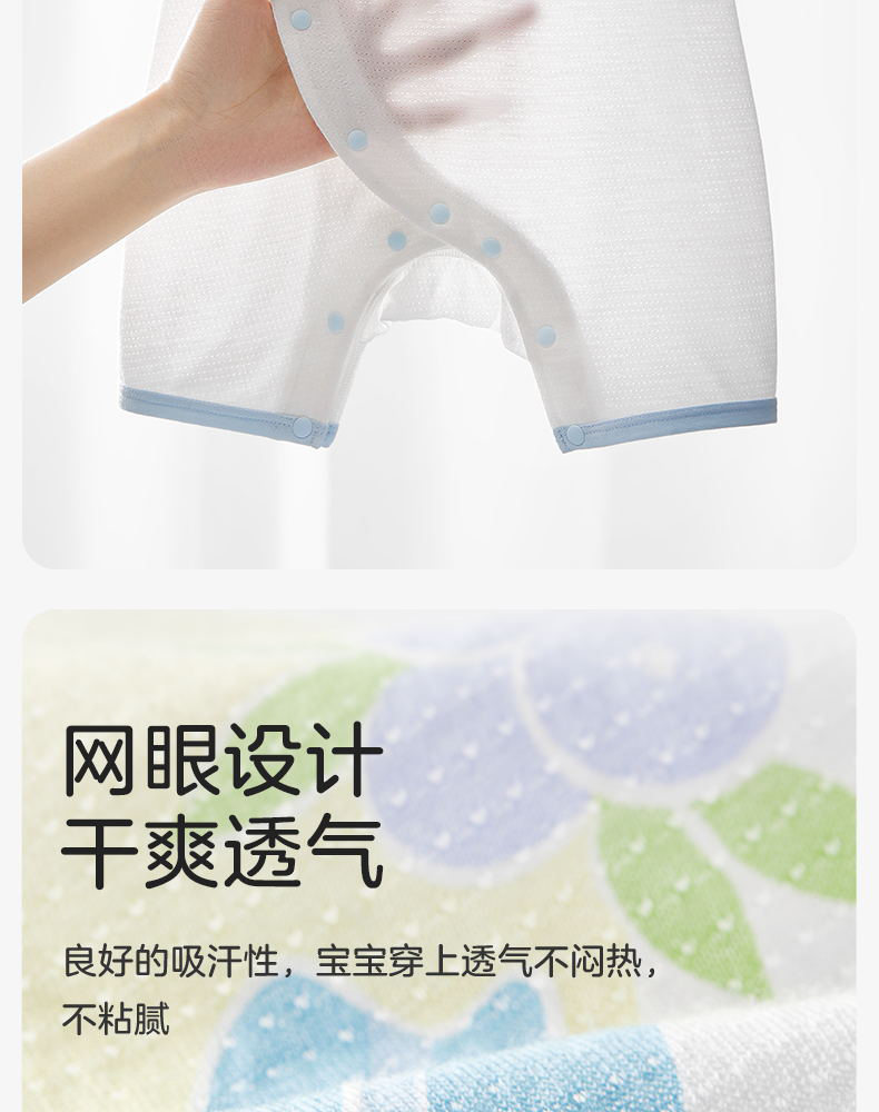 【100元3件随心配】(买6件加赠帆布包)新生儿婴儿网眼斜襟连体衣连体服包屁衣