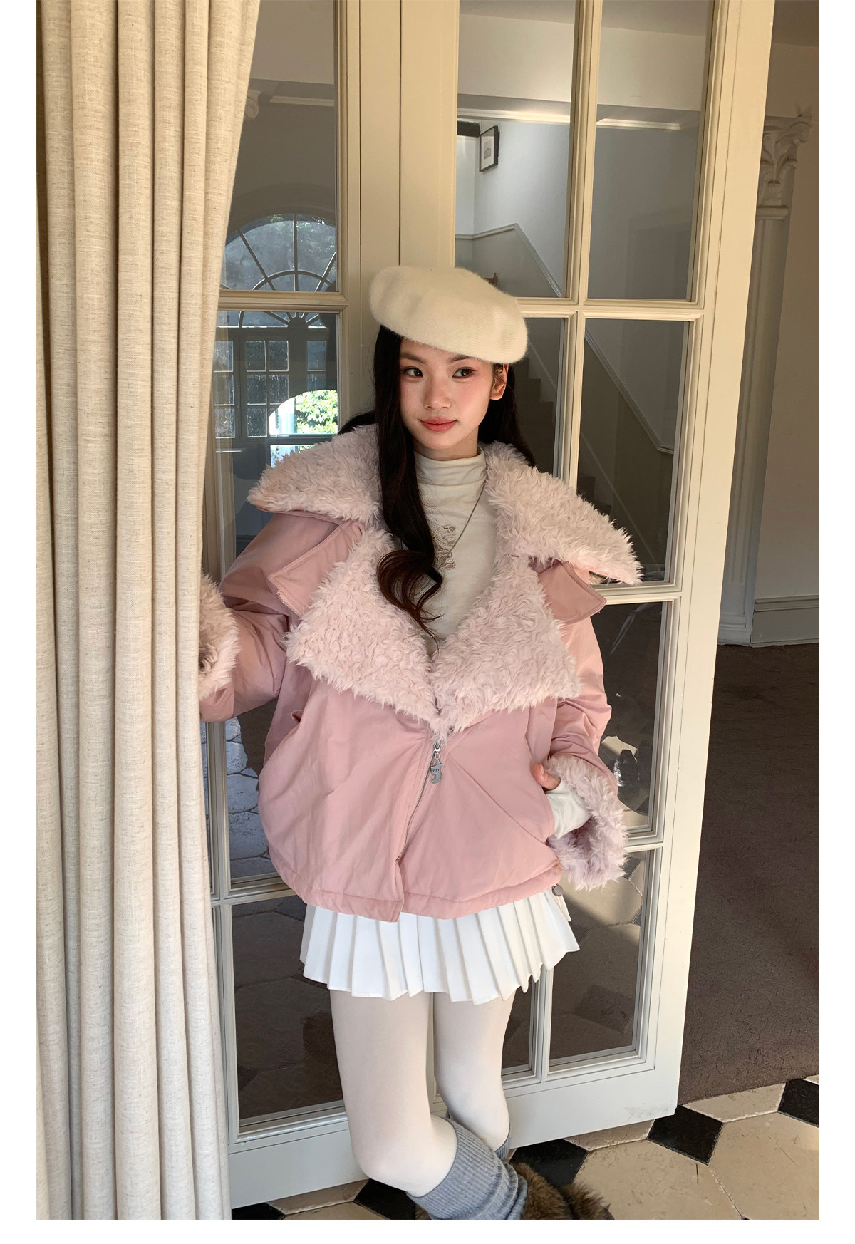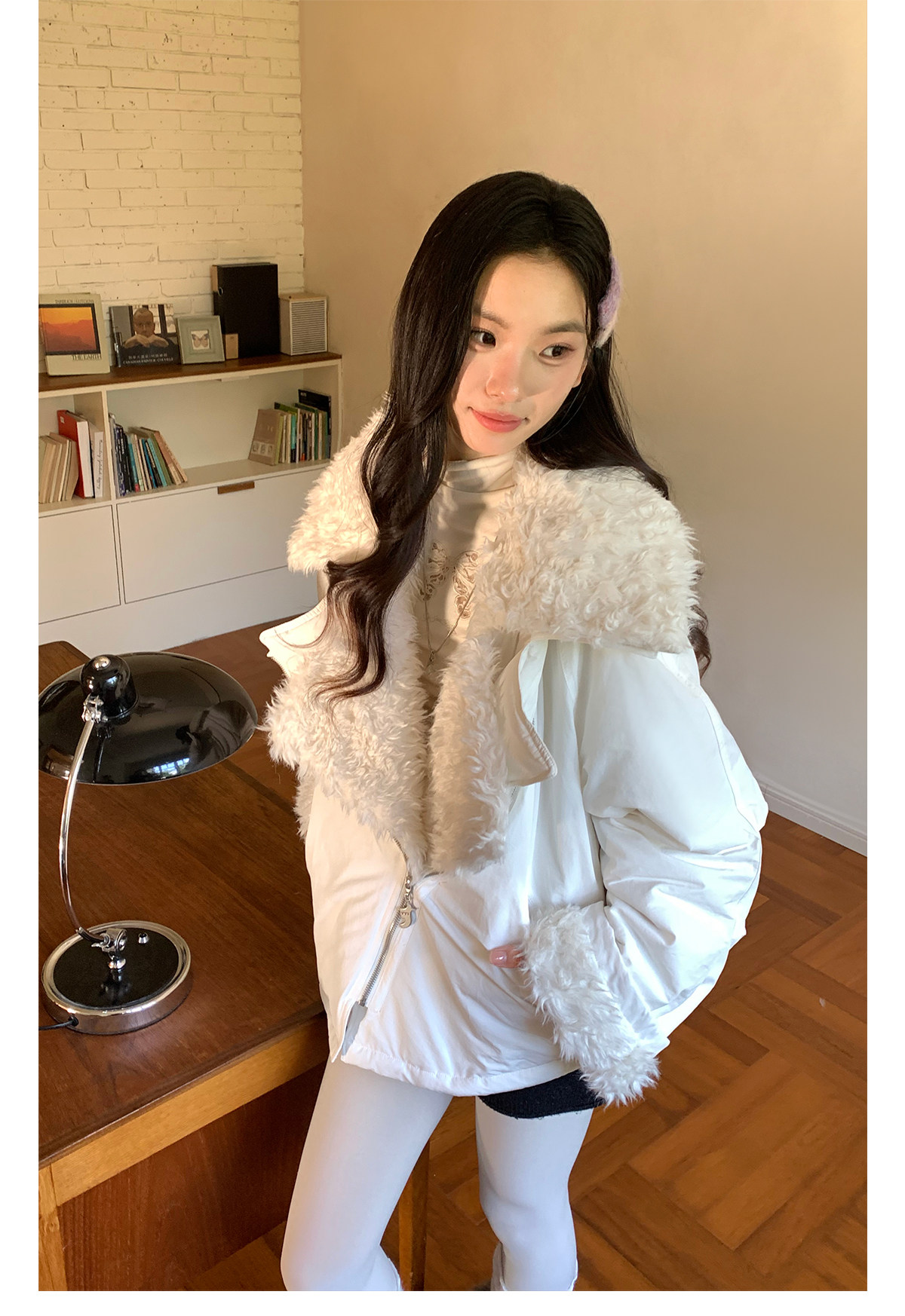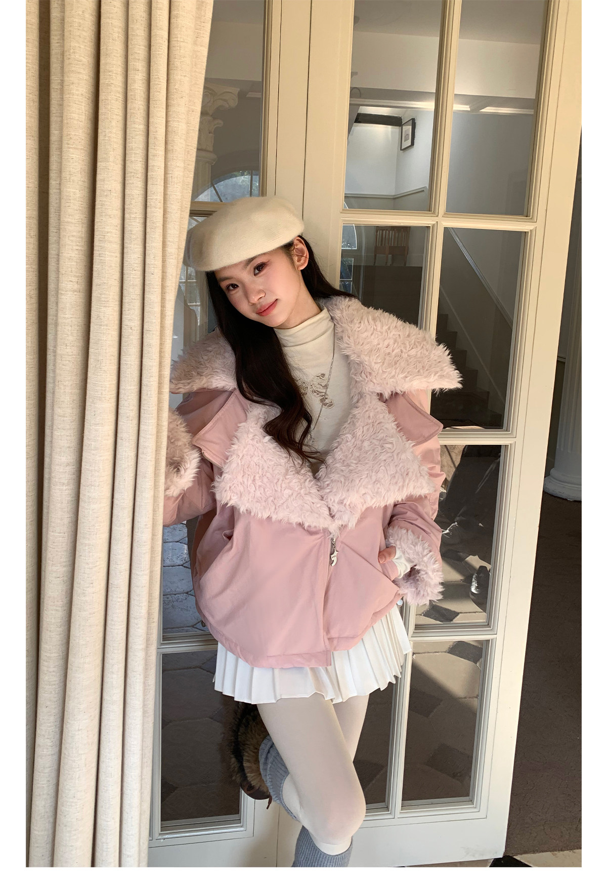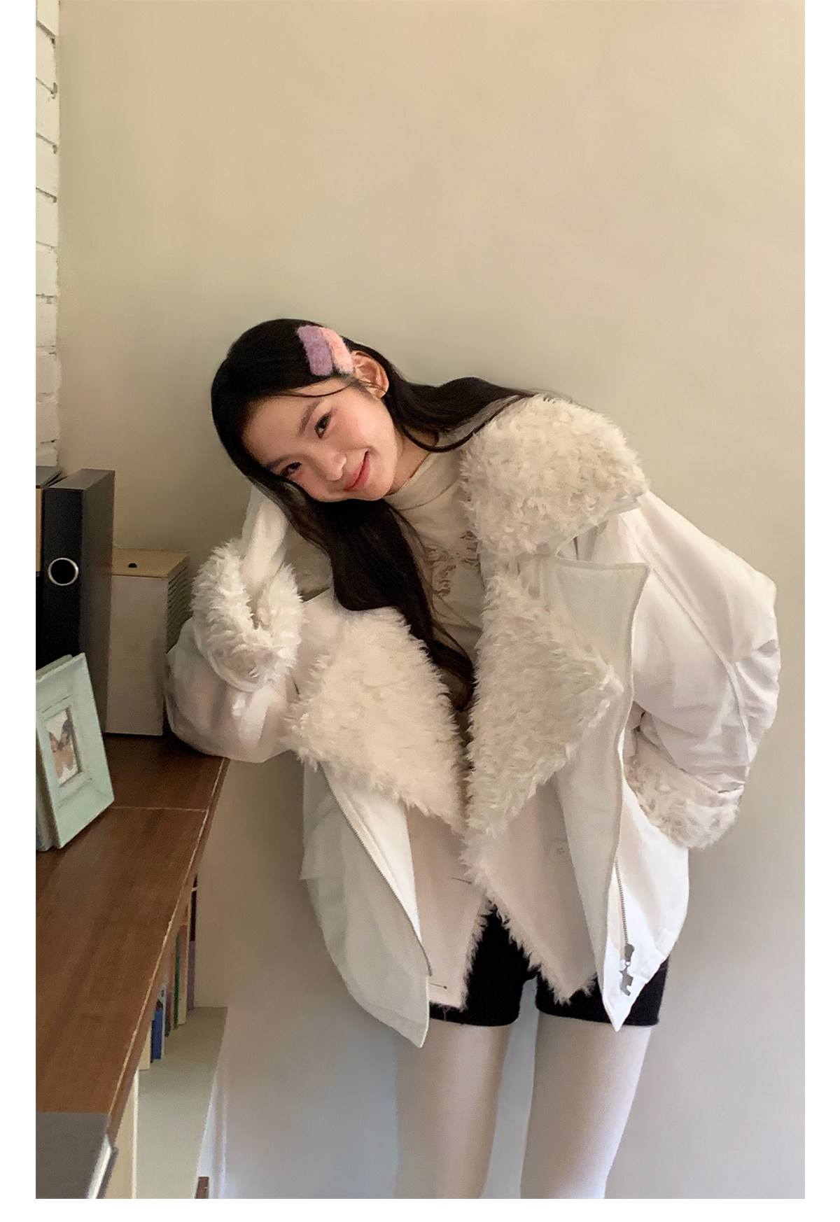 FTT FlyTheTruth『白桃奶绒』 羊羔毛白色夹克外套秋冬大翻领上衣