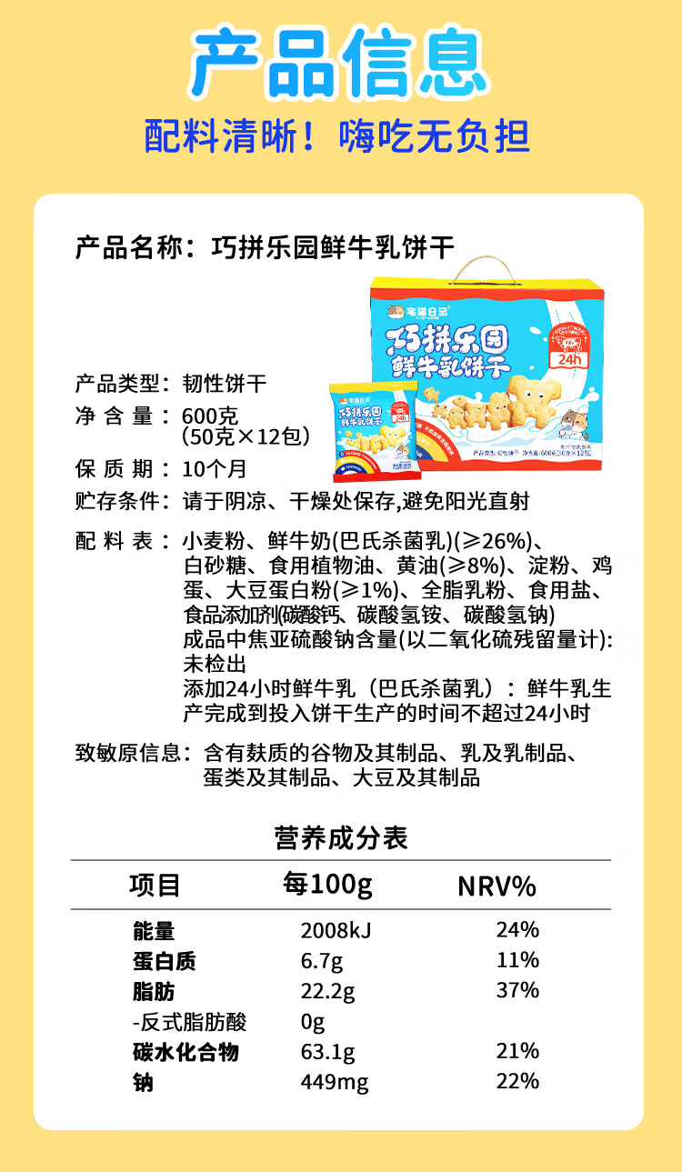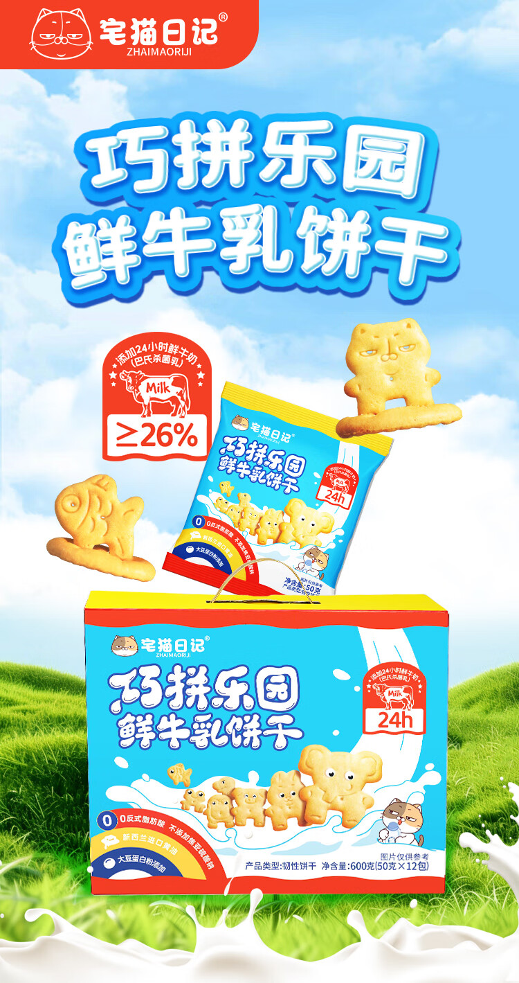 【分仓直发包邮】宅猫日记巧拼乐园鲜牛乳饼干600g