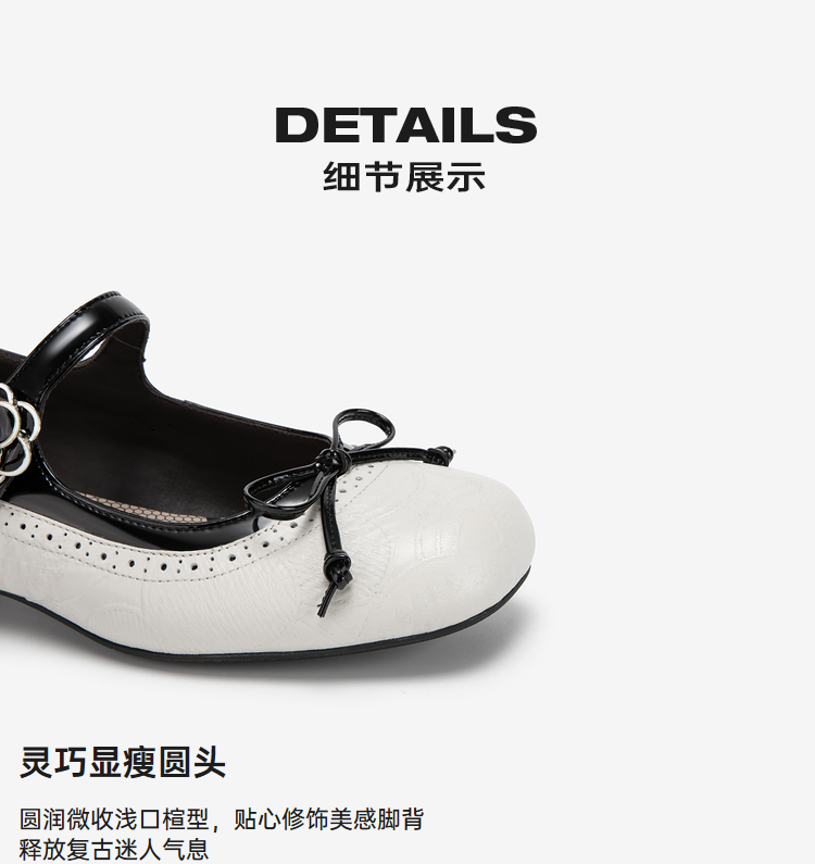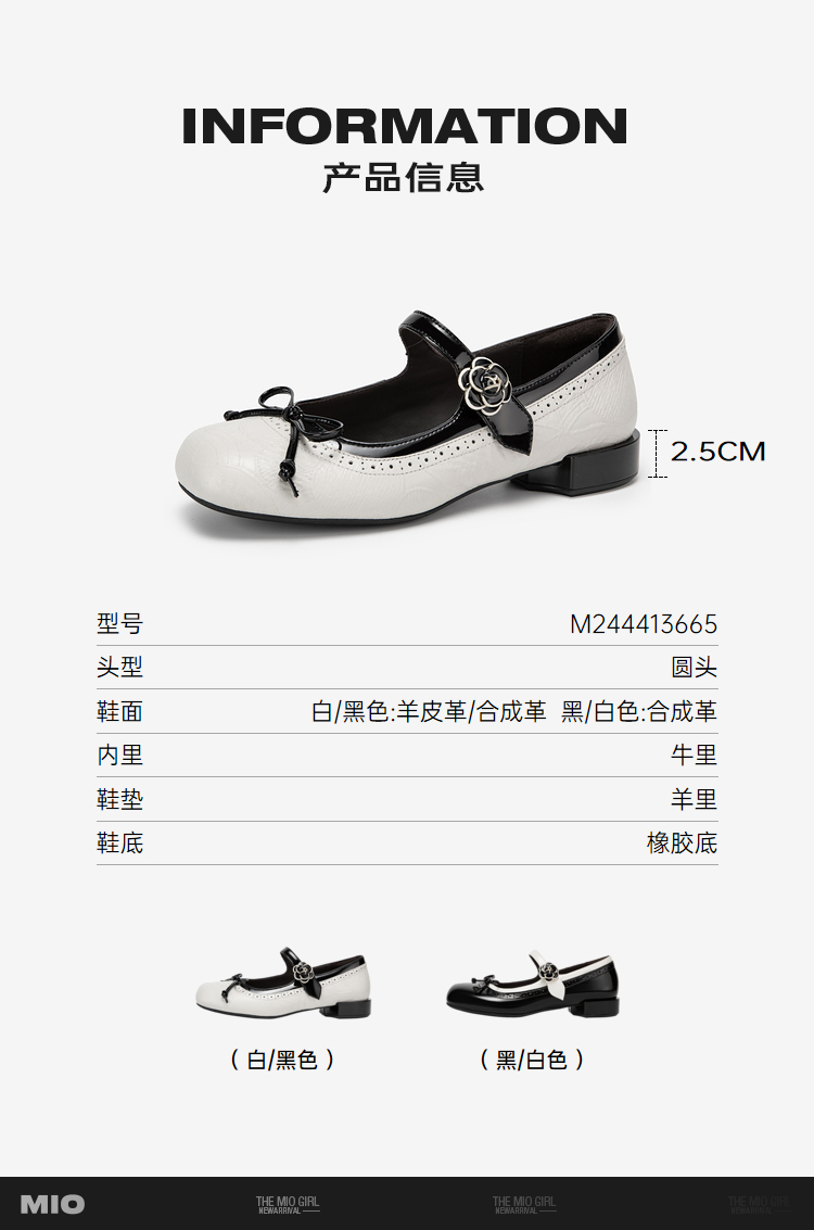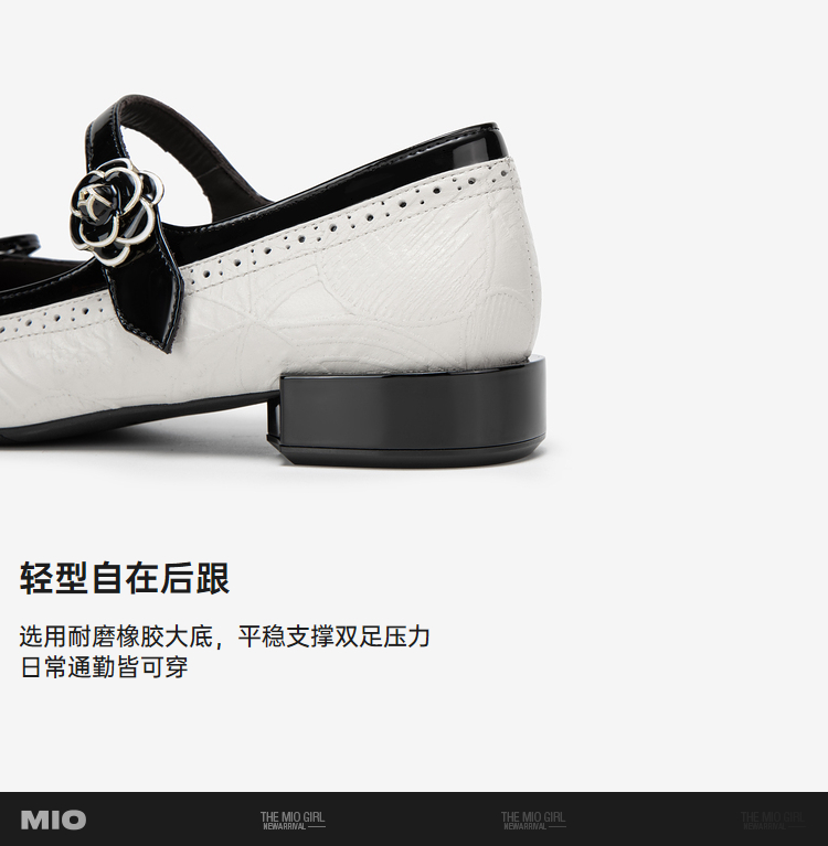 MIO米奥秋季秀气圆头低跟单鞋复古山茶花通勤玛丽珍鞋女鞋M244413665