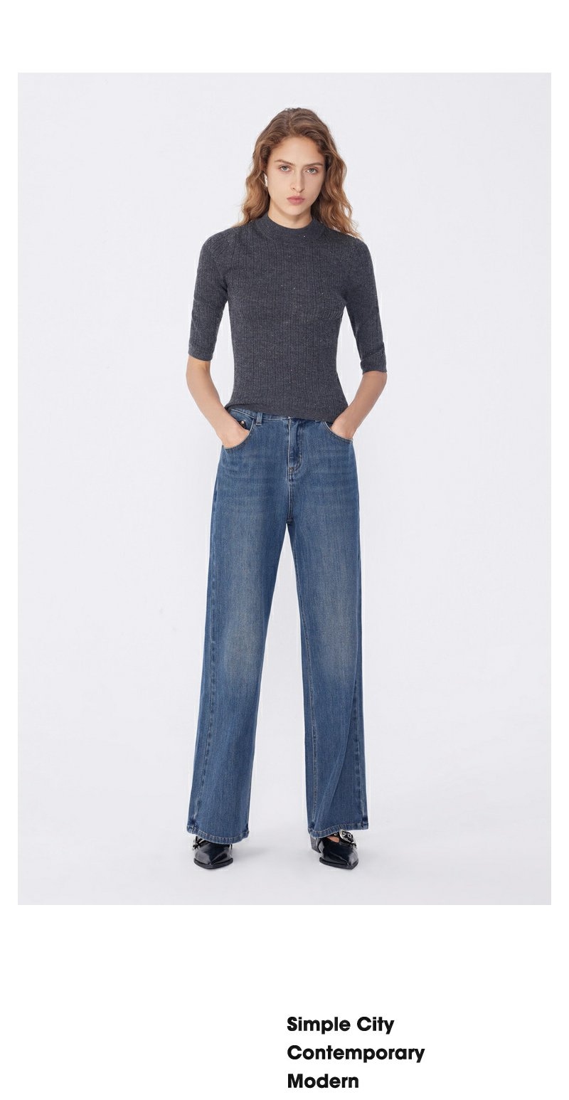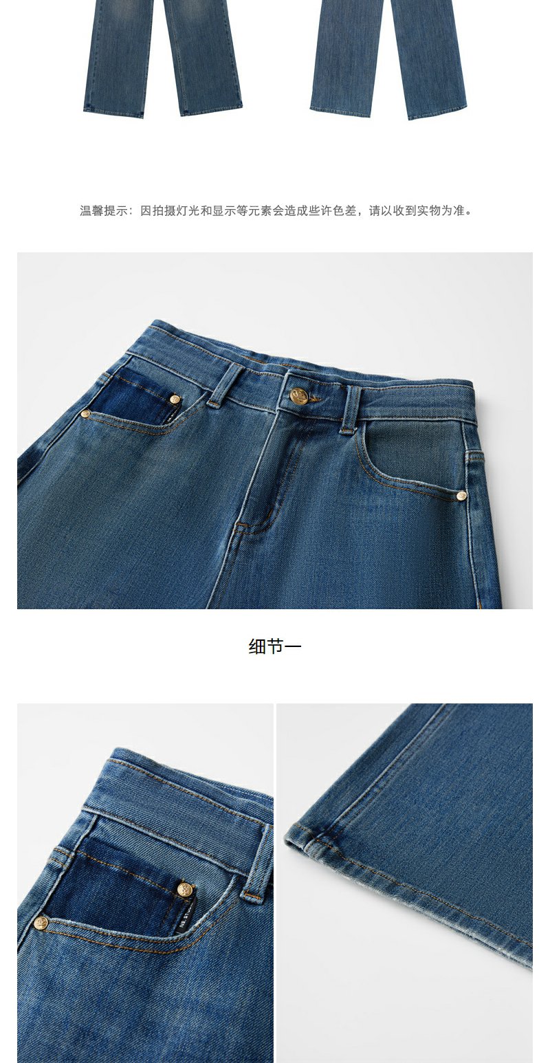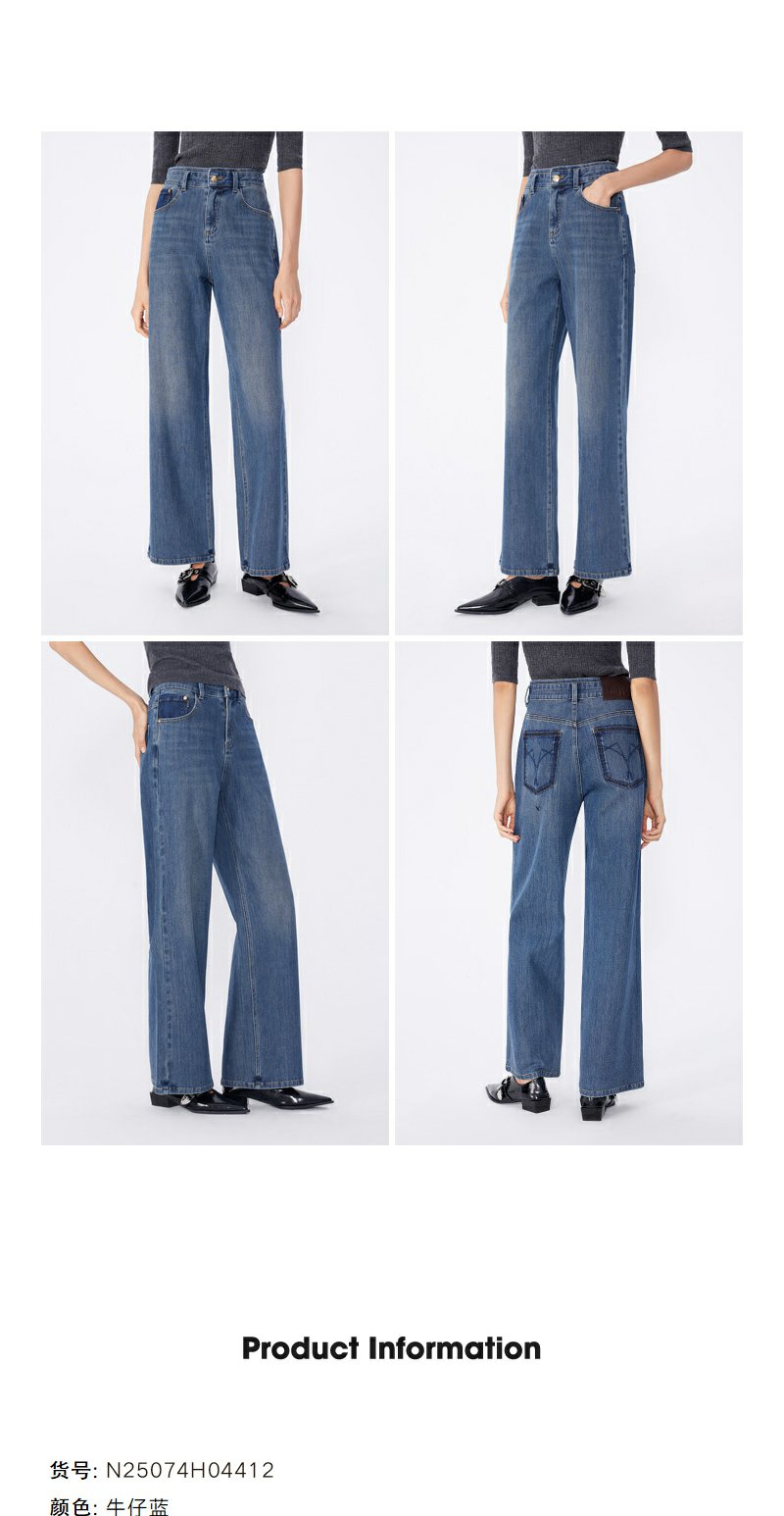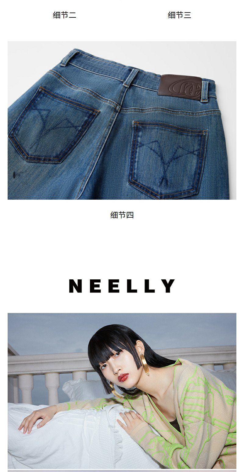 NEELLY纳俪商场同款春季新款直筒裤款百搭显瘦舒适修饰腿型牛仔裤N25074H04412