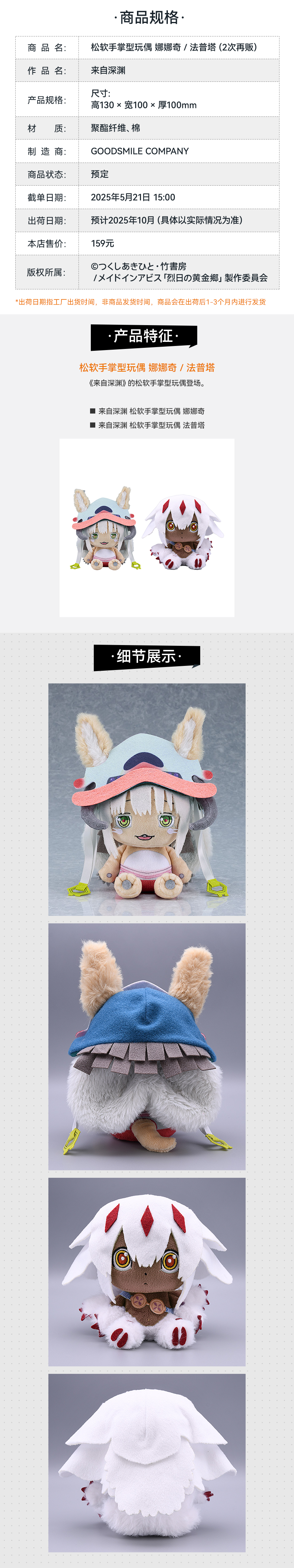 【GSC补款】松软手掌型玩偶 娜娜奇/法普塔 来自深渊