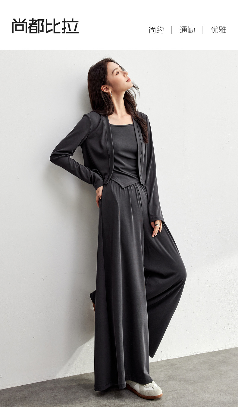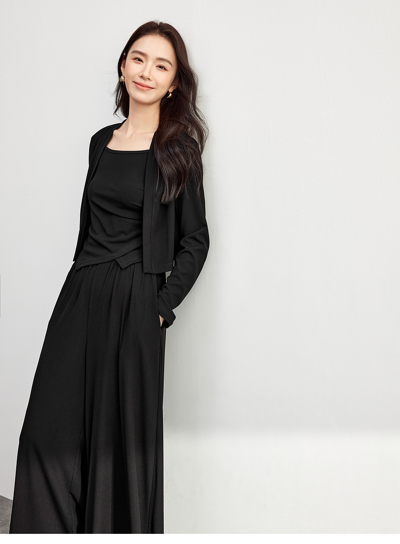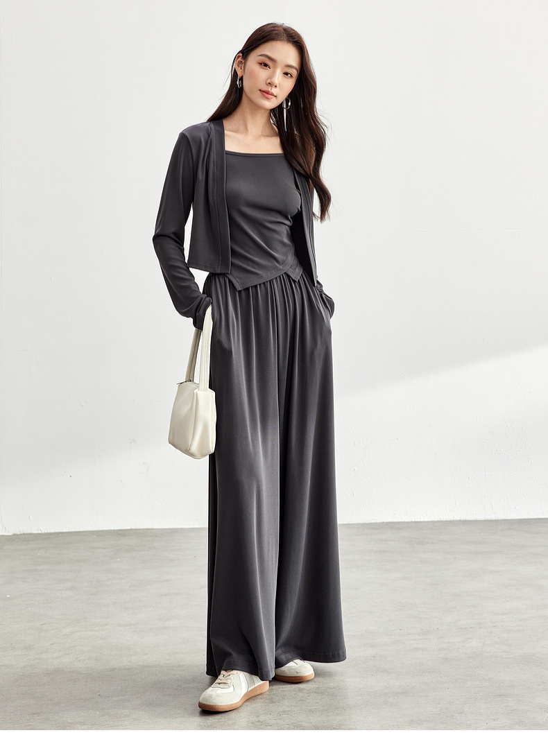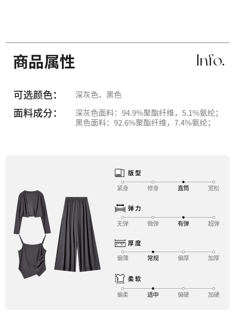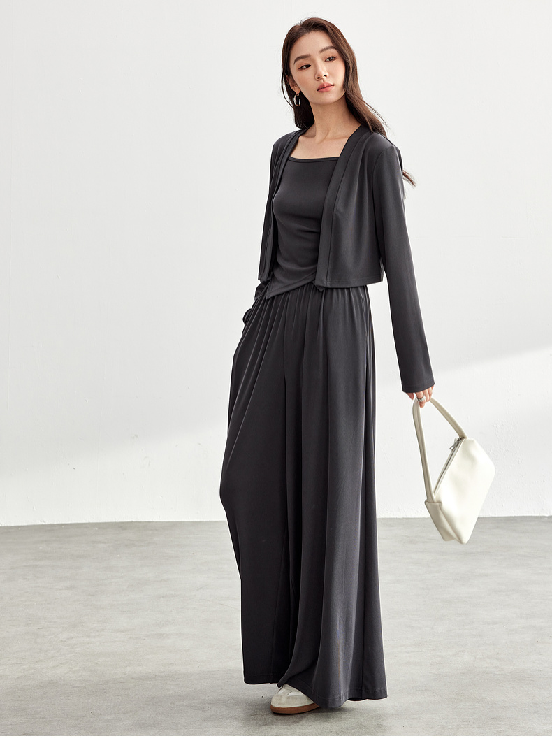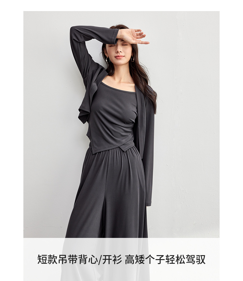 【内购】懒人穿搭吊带背心&长袖开衫&松紧高腰阔腿长裤三件套装-151Z58202