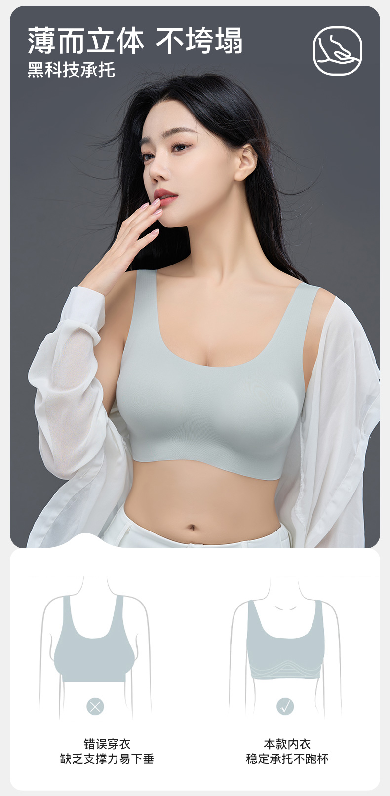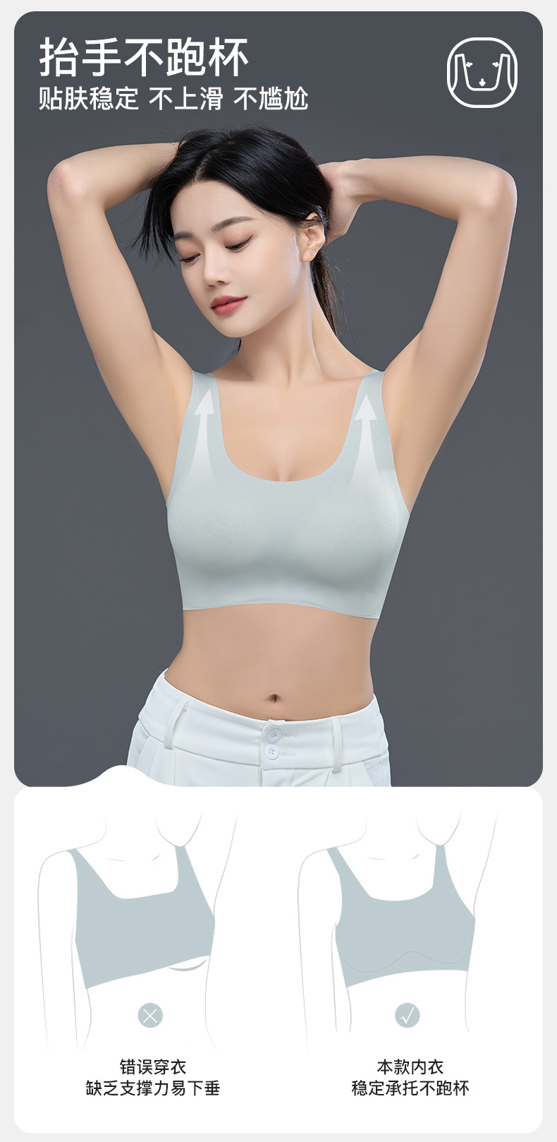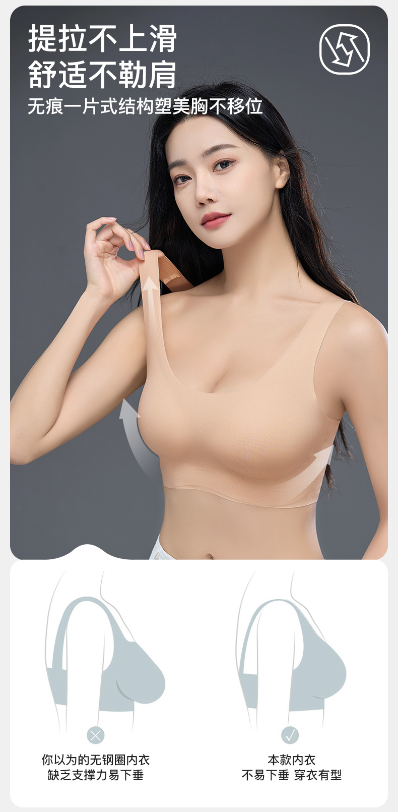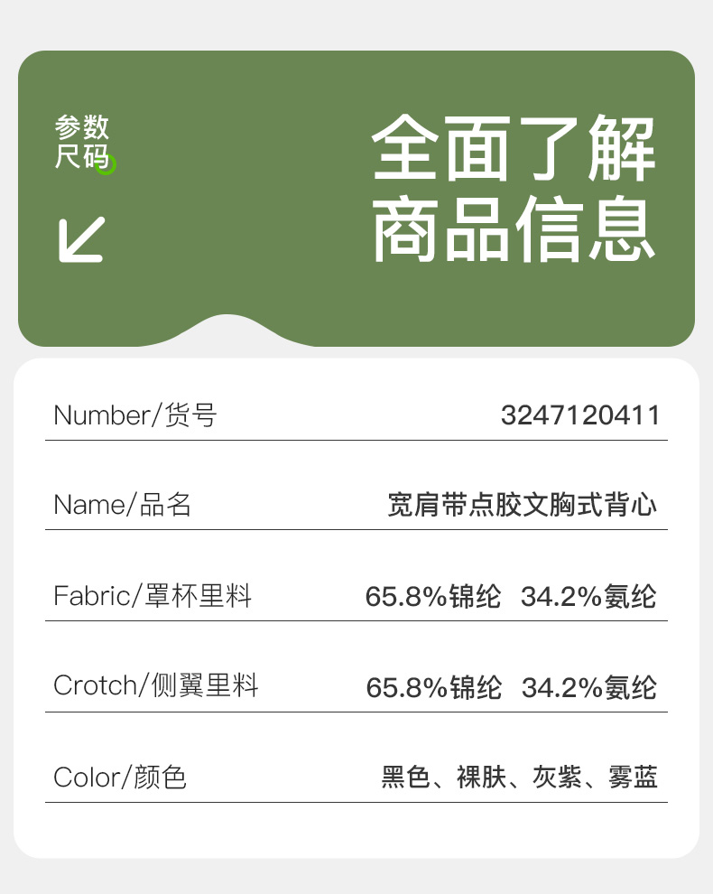 爱帝宽肩带点胶文胸式背心