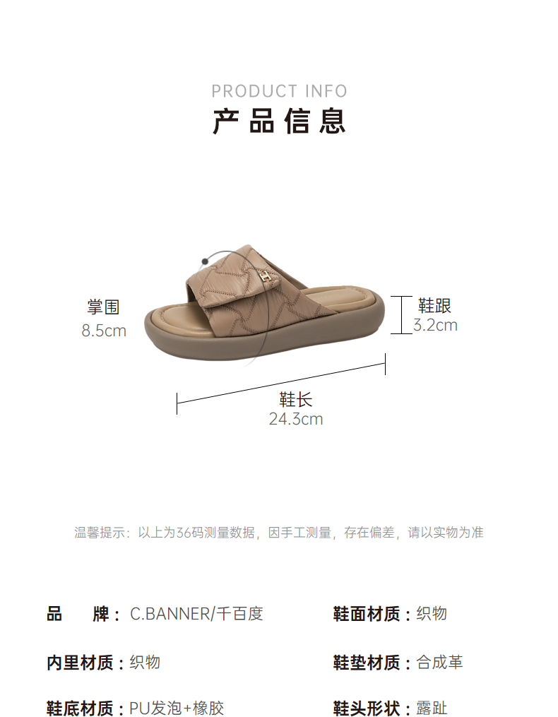 千百度厚底增高凉拖鞋女款夏季魔术贴平底可外穿A24381005