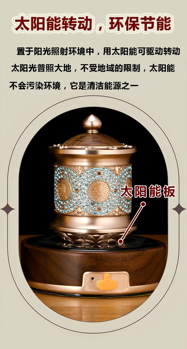 新款高档汽车载充电太阳能香薰转动摆件室内佛堂车内装饰礼品旋转散香精致轻奢车载室内摆件