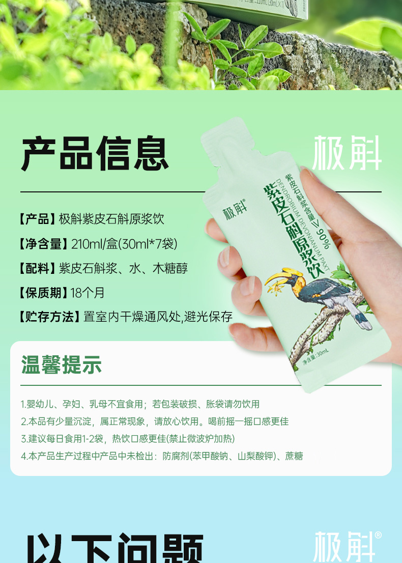 【建议4盒起囤】极斛高黎贡山紫皮石斛原浆 润养肠胃 含浆量高达百分之九十 30ml*7袋/盒